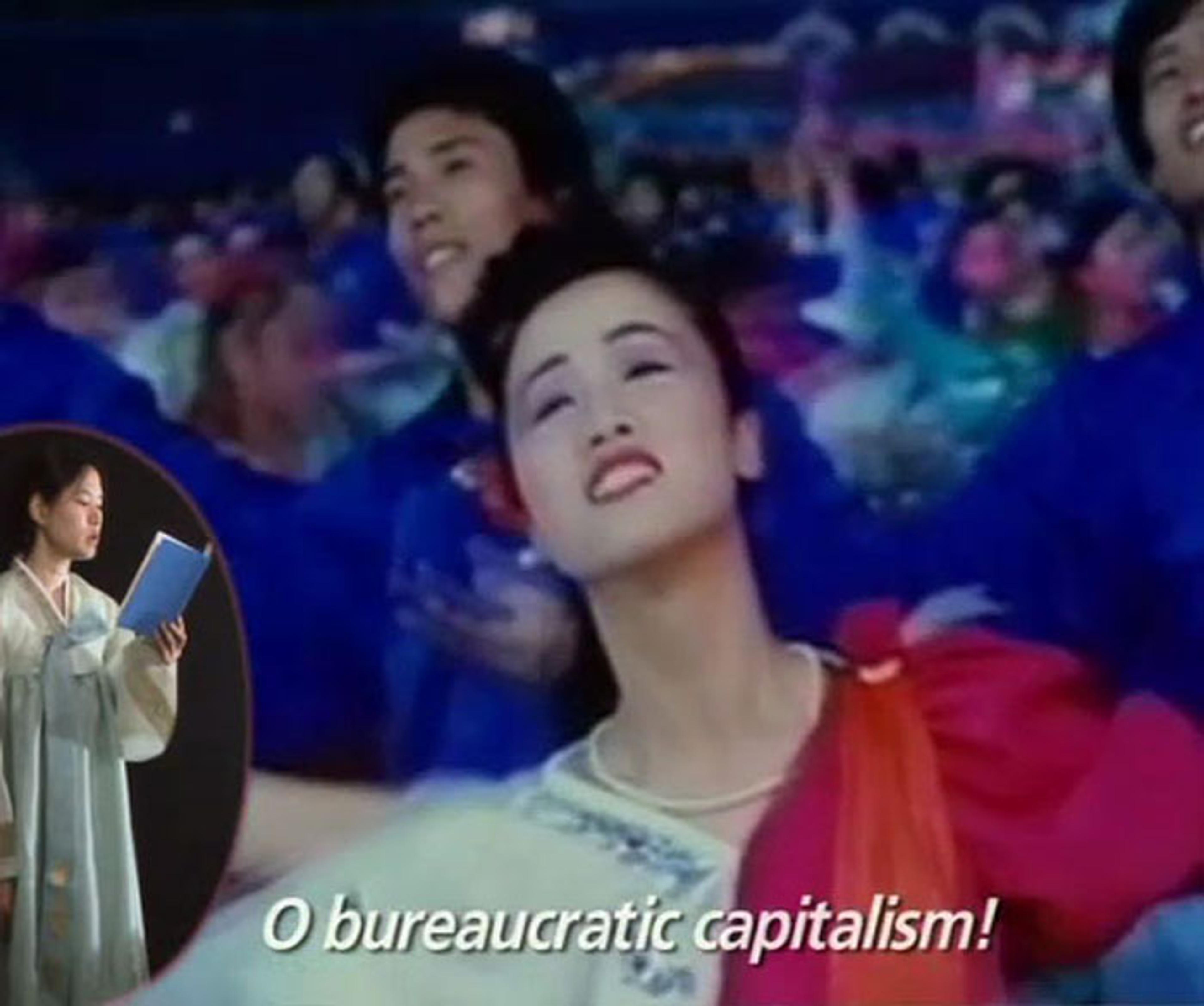 “In the late 1960s Kim Jong Il guaranteed his succession as the Dear Leader of North Korea by adapting his father's Juche (pronounced choo-CHAY) philosophy to propaganda, film and art. Translated as self-reliance, Juche is a hybrid of Confucian and authoritarian Stalinist pseudo-socialism. The film is about a South Korean video artist who comes to a North Korean art residency to help bring Juche cinema into the 21st century. Inspired by the real-life story of the South Korean director kidnapped in the '70s to invigorate the North Korean film industry, the film follows Yoon Jung Lee, a young video artist invited to work at a Juche art residency on a North Korean collective farm. The story is told through the films she made at the residency as well as interviews with a Bulgarian filmmaker and even a brief sci-fi movie.” – Video Data Bank