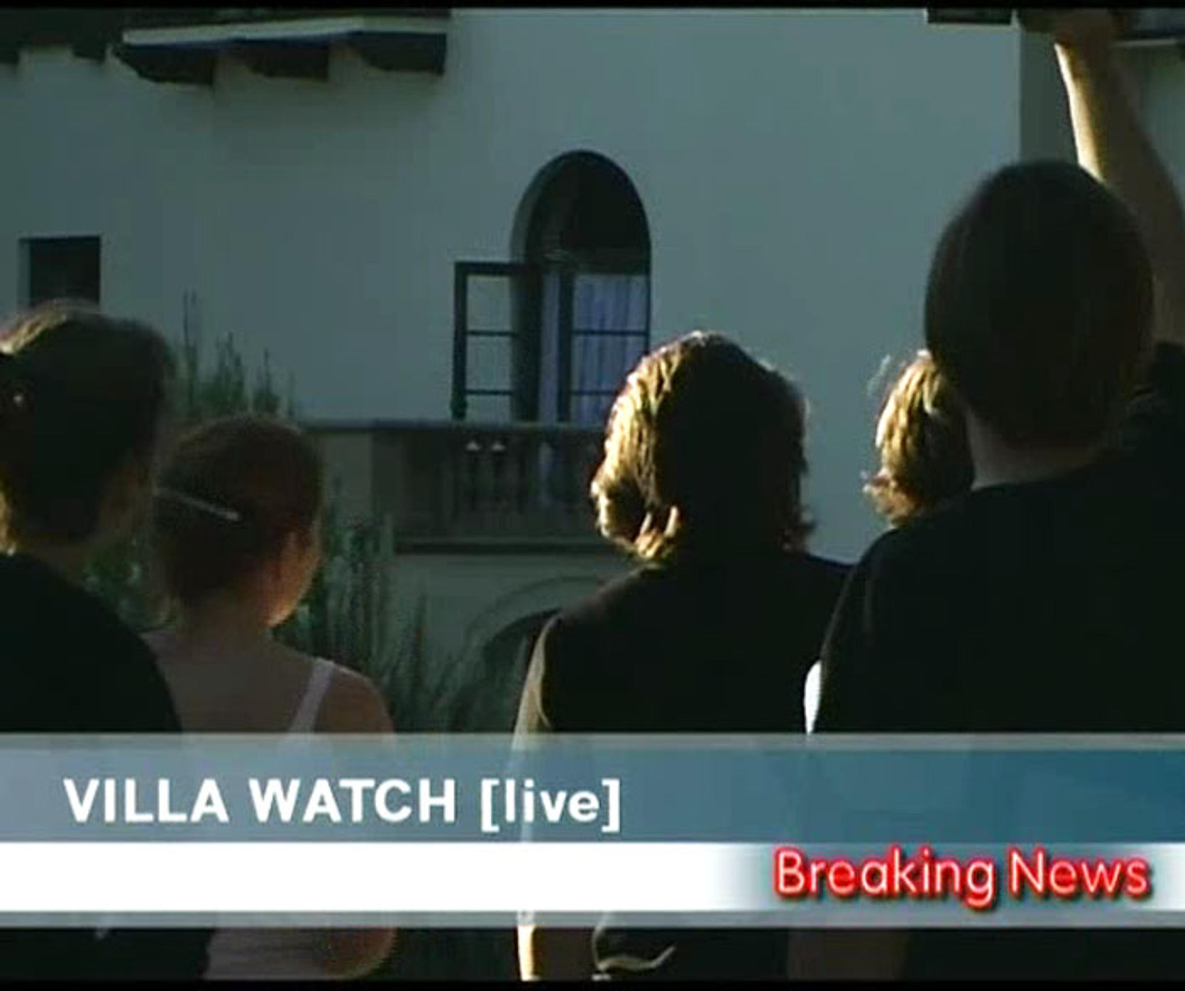 A group of people enters a villa to attend a lecture but, for reasons that remain unexplained, cannot (or will not) leave. Three forms of media triangulate to ponder this event: an artist making a 16mm film, a TV crew and a local spectator wielding a digital video camera. Borrowing the conceit of Luis Buñuel’s absurdist classic The Exterminating Angel, Haghighian and Hopf stage a curious meditation on media, spectatorship and the paradox of attendance.