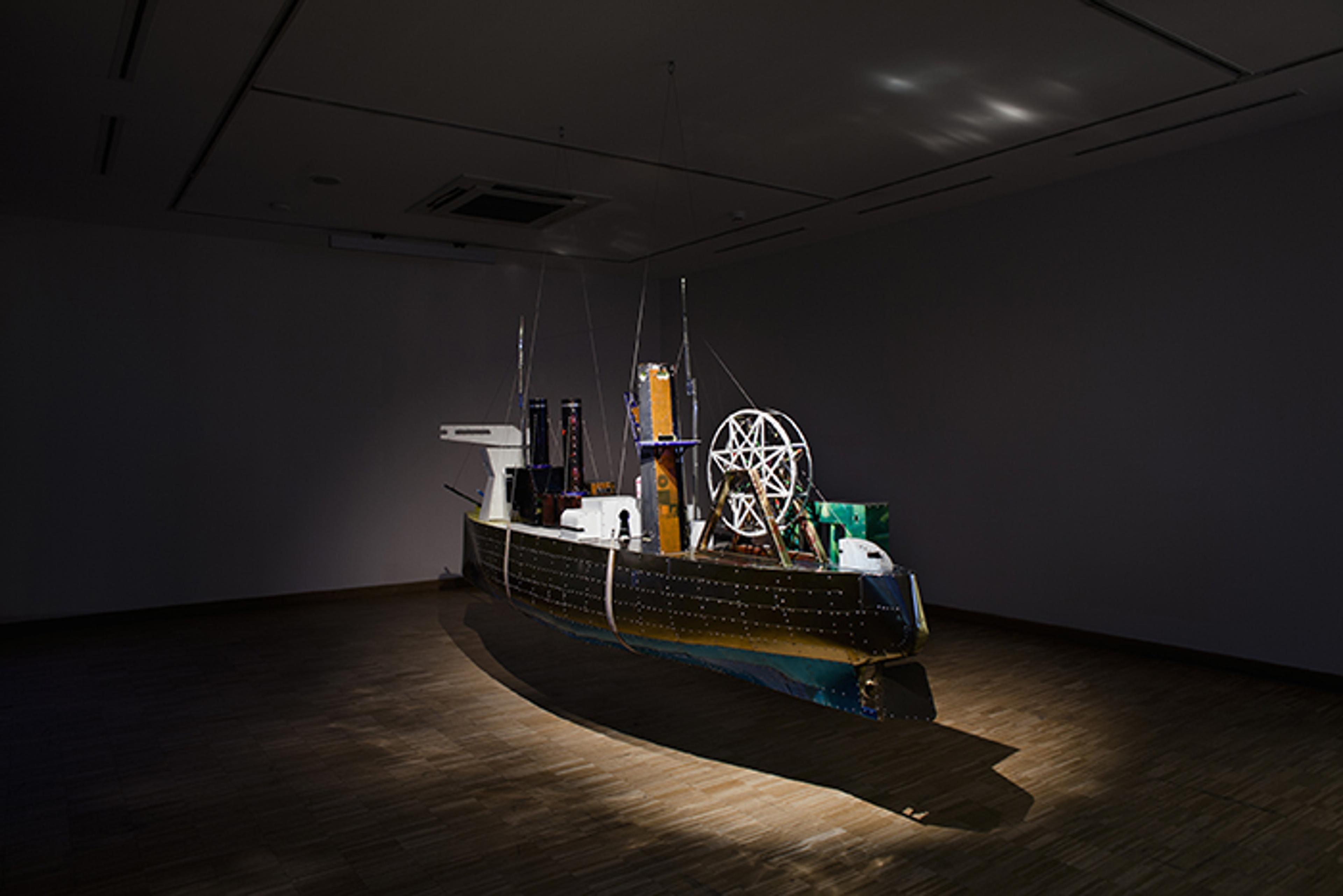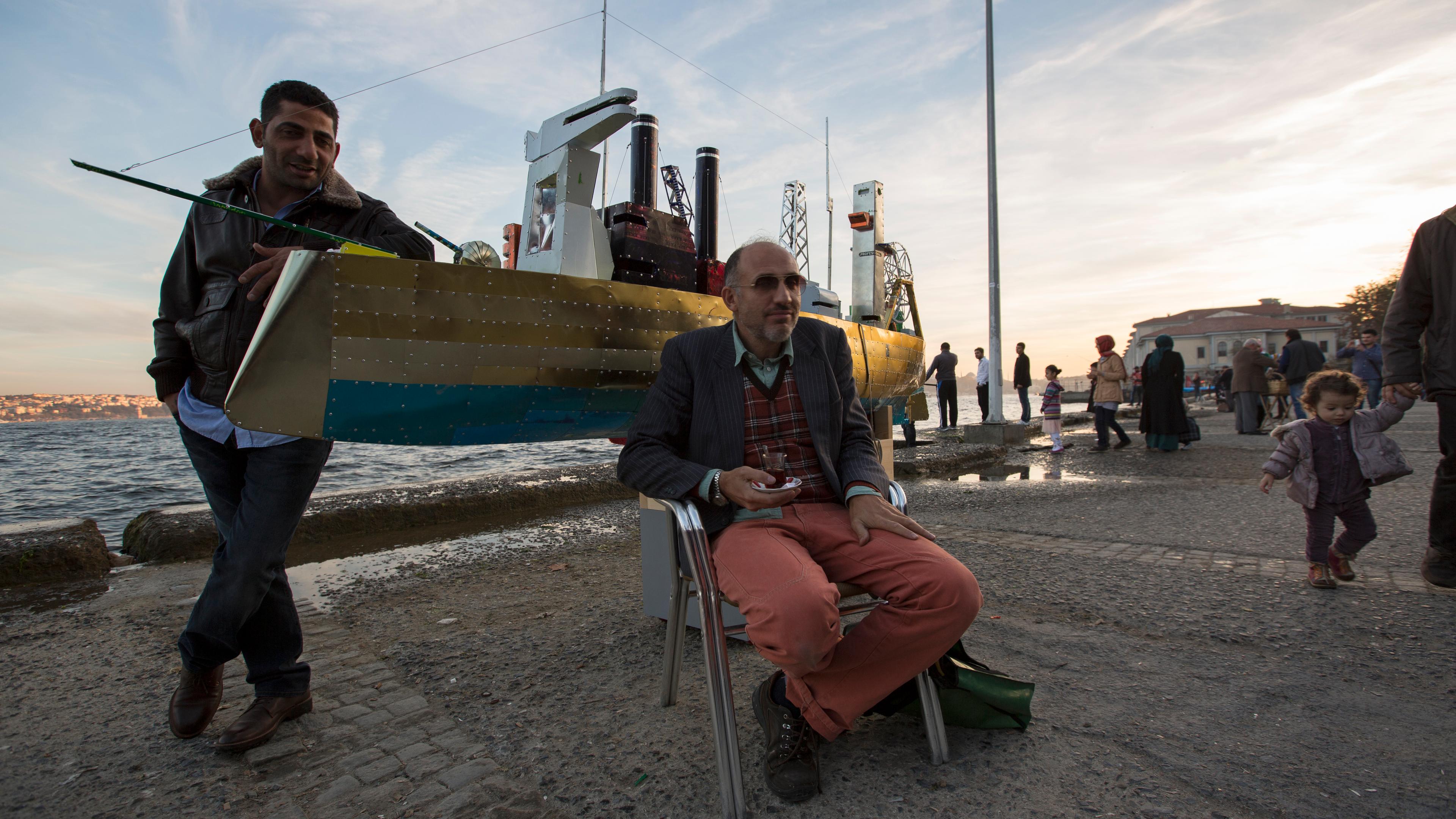Bir mühendislik ürünü olan gemi, üstünde lunapark ve helikopter pisti gibi çeşitli mimari kurguları barındırır. Sanatçı, gemi imgesi üzerinden ironik bir anlatımla bu coğrafyadan gitmiş, gitmekte olan ve gitmek zorunda kalanlara dikkati çekerken Marmara Denizi'ni hem bir hareket noktası hem de bir geçiş rotası olarak ele alır.