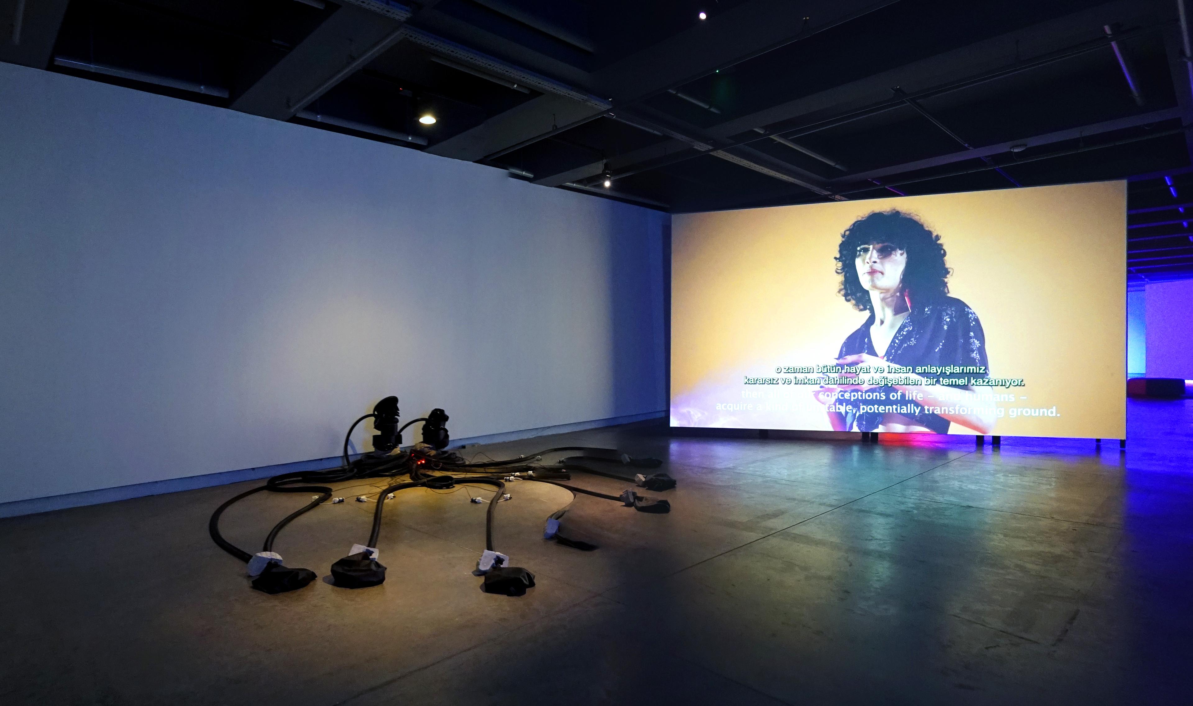 Öyleyse En Başa Dönelim, maddi dünya, bilimsel araştırma ve deneyimin duyusal boyutlarına dair çok katmanlı bir keşif alanı oluşturuyor. Ortak varoluş fikrini odağına alan sergi, hafıza ve duyumsamanın merkezi olarak bedenin işlevine dair açılımlar da barındırıyor. İnsan, insan olmayan, makine arasındaki karmaşık ve devingen ilişkileri gündeme getirerek sürekli inşa hâlindeki toplumsal gerçeklikleri sorgulamaya açıyor.