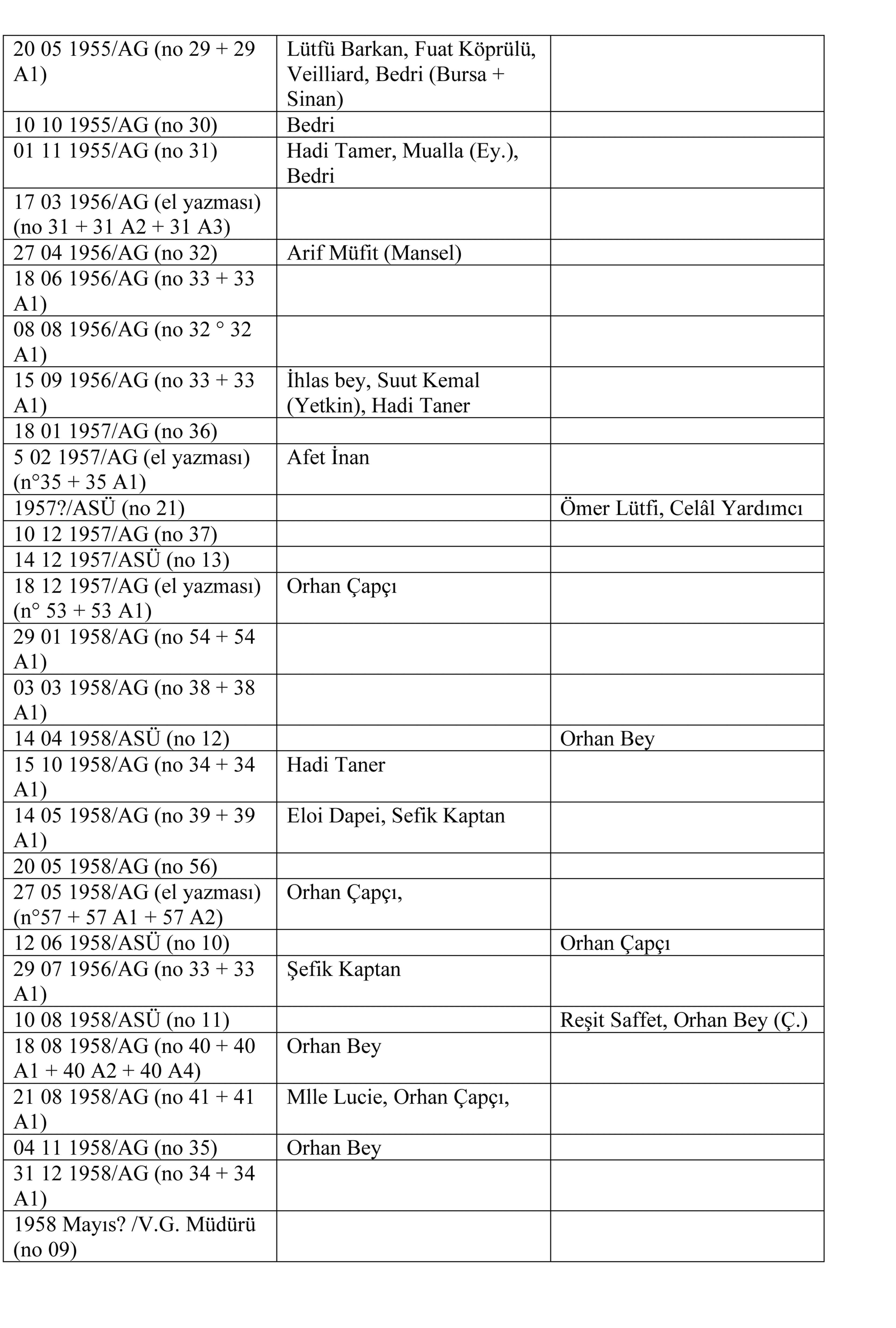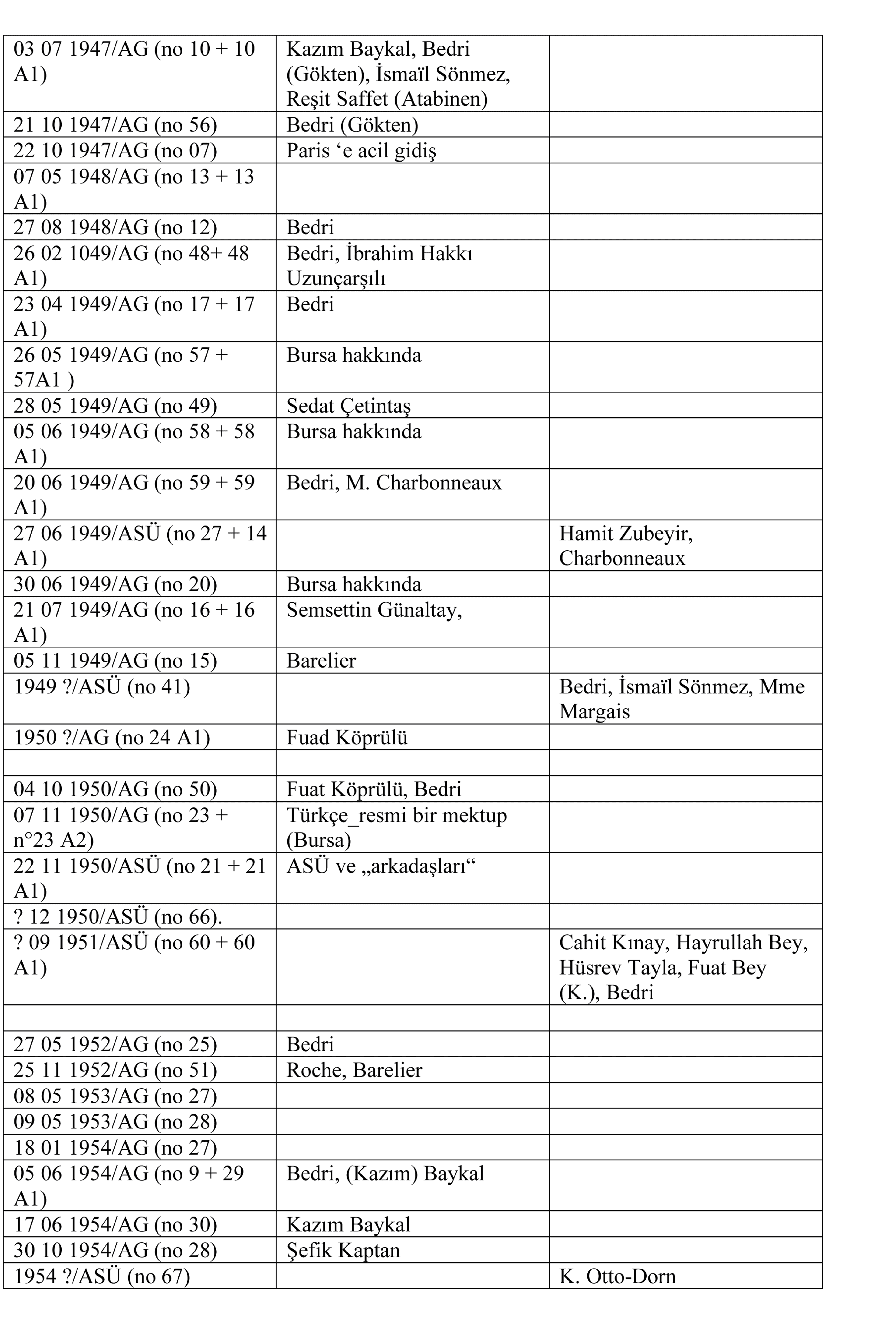 Mektuplarda bunların yanı sıra, Fransa ve Türkiye'deki siyasi çalkantılardan bahsediliyor (bkz. 06.03.1961 tarihli ve 45 nolu Ülgen mektubuna[26]); ama sadece, bu çalkantıların özel işlerini olumsuz bir şekilde etkileyebildikleri taktirde. Bir sonraki Gabriel mektubunda[27] ima edilen (ama arşivlerde bulunmayan) 29.12.1961 tarihli mektupta ise Ülgen, Vakıflar Genel Müdürlüğü'nün yeni sorumlusu olan Nihat Danışman isteği üzerinden Vakıflar Dergisi için Gabriel'den bir yazı istiyor.