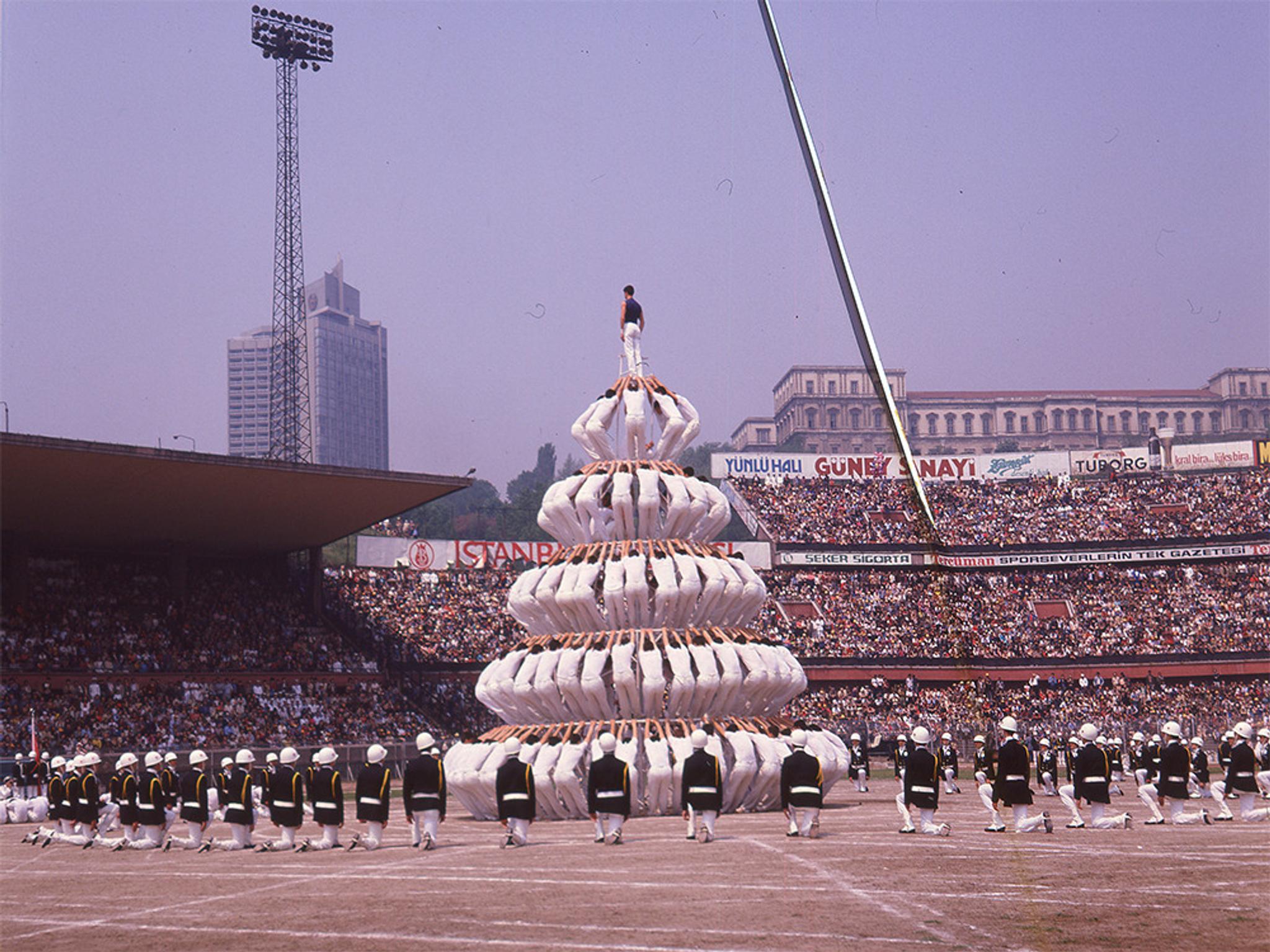 Fotoğrafların ikinci hakim rengi olan kırmızı ise mevcudiyet sebebini doğadan değil, Türk bayrağından alır. 23 Nisan Çocuk Bayramı, 29 Ekim Cumhuriyet Bayramı ve 19 Mayıs Gençlik ve Spor Bayramları kamusal alanı kırmızıya boyamak için tasarlanmıştır sanki... Şehirlerin etnik yapısındaki demografik yoğunluk ne olursa olsun, "bayrak", kamu tarafından empoze edilen bir güç göstergesidir. Dünyanın birçok ülkesinde kullanımı kurallarla sınırlanan bayrak, Türkiye'de fütursuzca asılır, kendi gibi olmayana gösterilmiş bir sopa gibi caydırıcı özellik taşır. İlkokul 5. sınıftaki bir bayrak töreninde, bayrağı tamamen göndere çektiğimi zannedip İstiklal Marşı'nın bitmesini beklemiştim, oysa bayrağı direğin yarısına kadar yukarı çekmişim. Marş bitiminde okul müdürümüzün bana bütün okulun önünde attığı meydan dayağını ve ettiği hakaretleri hatırlayınca bugün bile tüylerim diken diken oluyor.