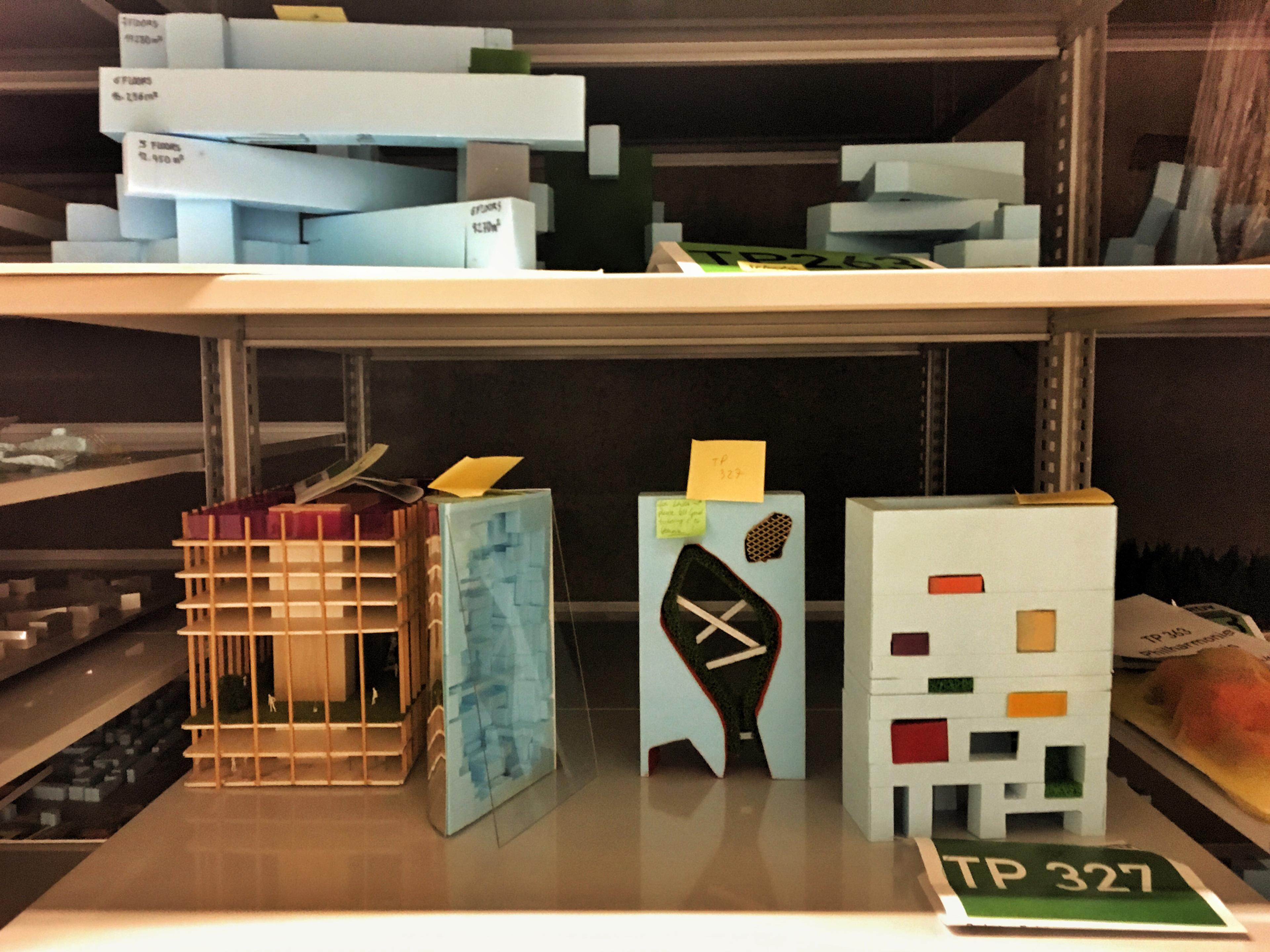 Normalde halka kapalı olan arşiv depolarını düzenlenen rehberli turlar yoluyla gezmek, koleksiyonların nasıl korunup erişilebilir hâle geldiğini görmek mümkün. Arşiv, Hollandalı mimar ve kent plancılarının çizim, yazışma, fotoğraf, yarışma projeleri gibi üretimlerinin yanı sıra; çeşitli mimarlık okulları ve derneklerin koleksiyonlarını da içeriyor. 18. yüzyıldan günümüze kadar uzanan geniş bir aralığı kapsayan içerik 700'ü aşkın koleksiyon sayısıyla dünyadaki en büyük mimarlık arşivlerinden birisi. Önemli bir kısmı sayısallaştırılan arşiv çevrimiçi erişime açık durumda ve aynı portal henüz sayısallaştırılmamış kısım için de katalog taramasına olanak sağlıyor. Çoğunlukla mimarlar ve mimarlık ofislerinin koleksiyonlarından oluşsa da, bu tür kapsamlı arşivlerde birçok hikâye gizlidir. Farklı okumalara, yeni katman ve kombinasyonlara olanak sağlayışıyla arşiv, yaratıcı araştırmalar için ziyadesiyle mümbit bir ortam sunar. Bu çokluktan feminist bir okuma da çıkarabilirsiniz, mimari çizimler üzerinden bir dönemin modasını yorumlamayı da deneyebilirsiniz. Nitekim, enstitüde yaptığım görüşmeler sırasında da en çok vurgulanan durum; sürekli büyüyen arşivin enstitünün araştırma ve sergi programlarında merkezi bir yere sahip oluşuydu. Benim için heyecan verici olan bir başka durumsa; çelik çekmeceler, dolaplar, açık ve kompakt raflarda korunan onlarca belgenin arasında yer alan kapsamlı bir maket koleksiyonuydu.