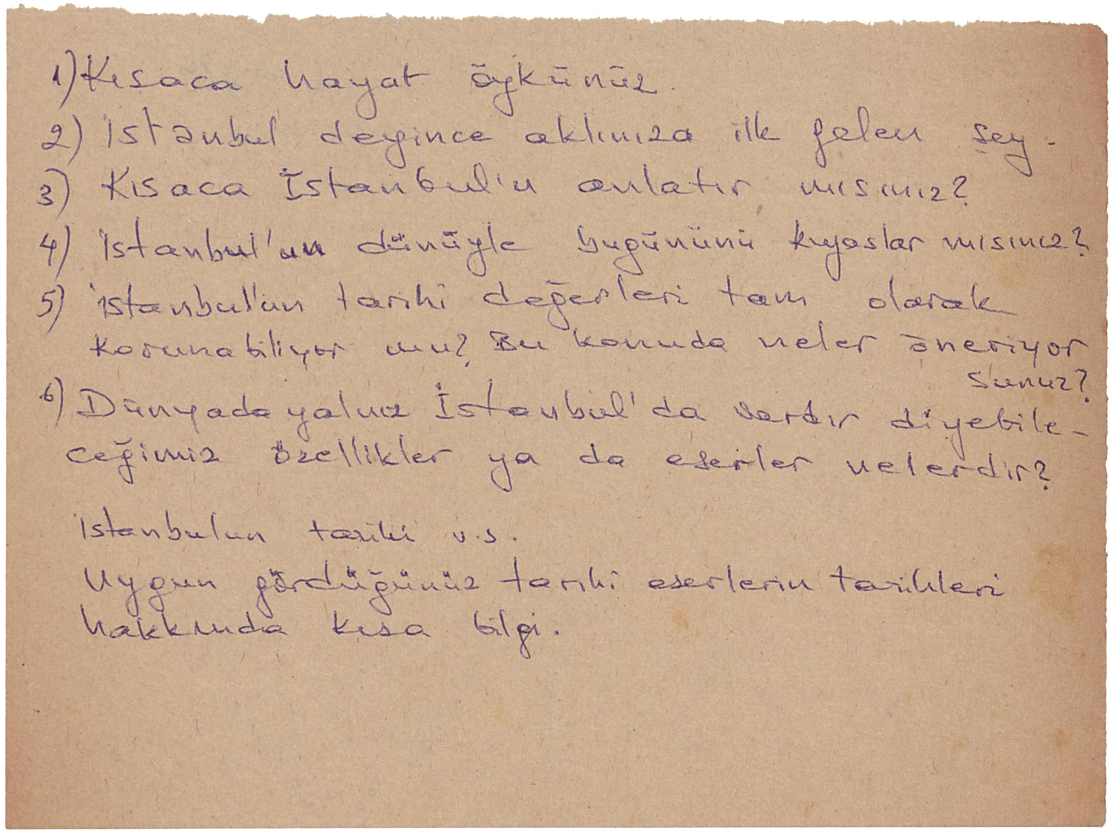 Reşad Ekrem Koçu’nun İstanbul Ansiklopedisi için bilgi toplamaya yönelik hazırladığı soru listesi