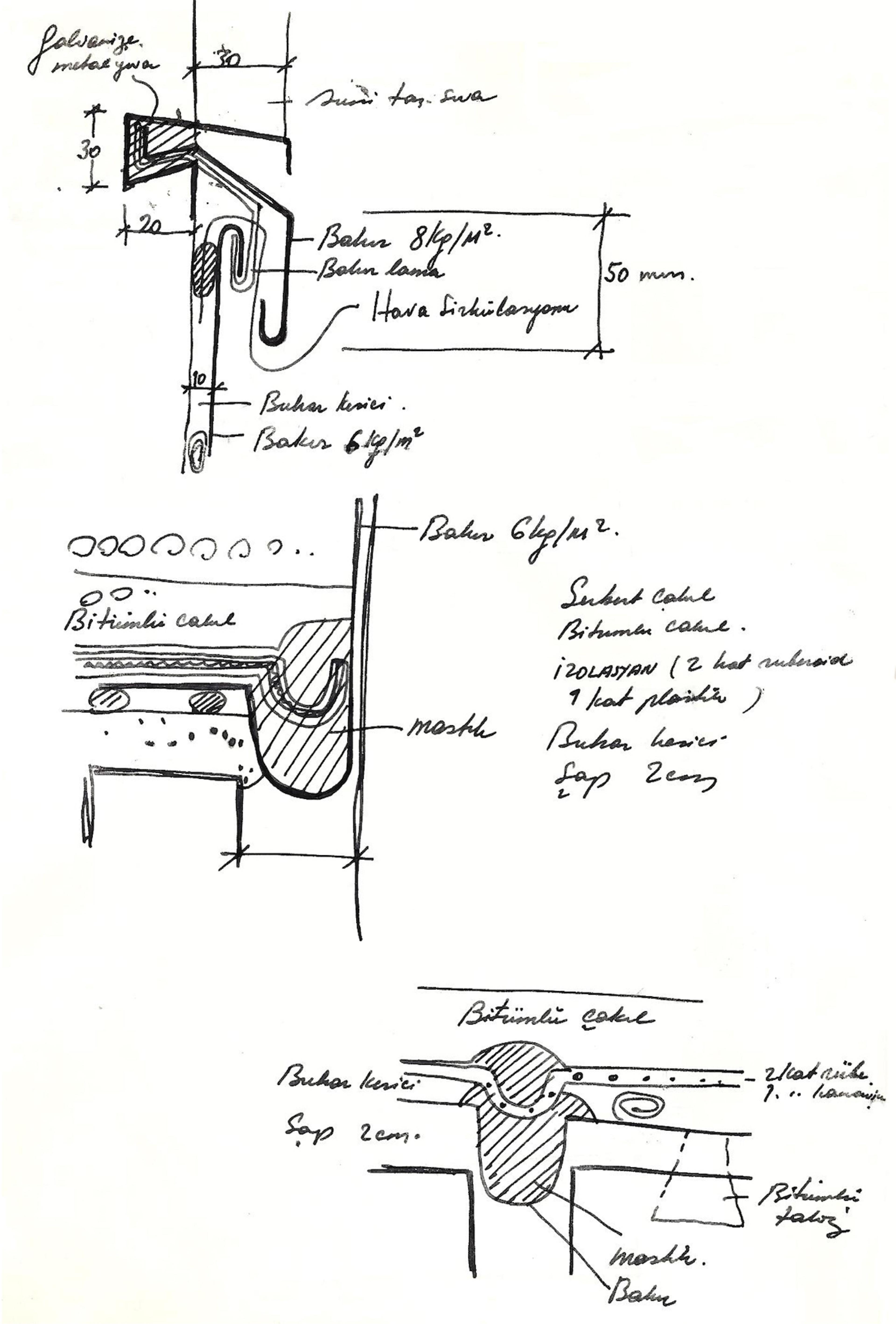 Altuğ Çinici ve Behruz Çinici tarafından tutulan “Şantiye Seyir Defteri”nden detay eskizleri, 1962-63
