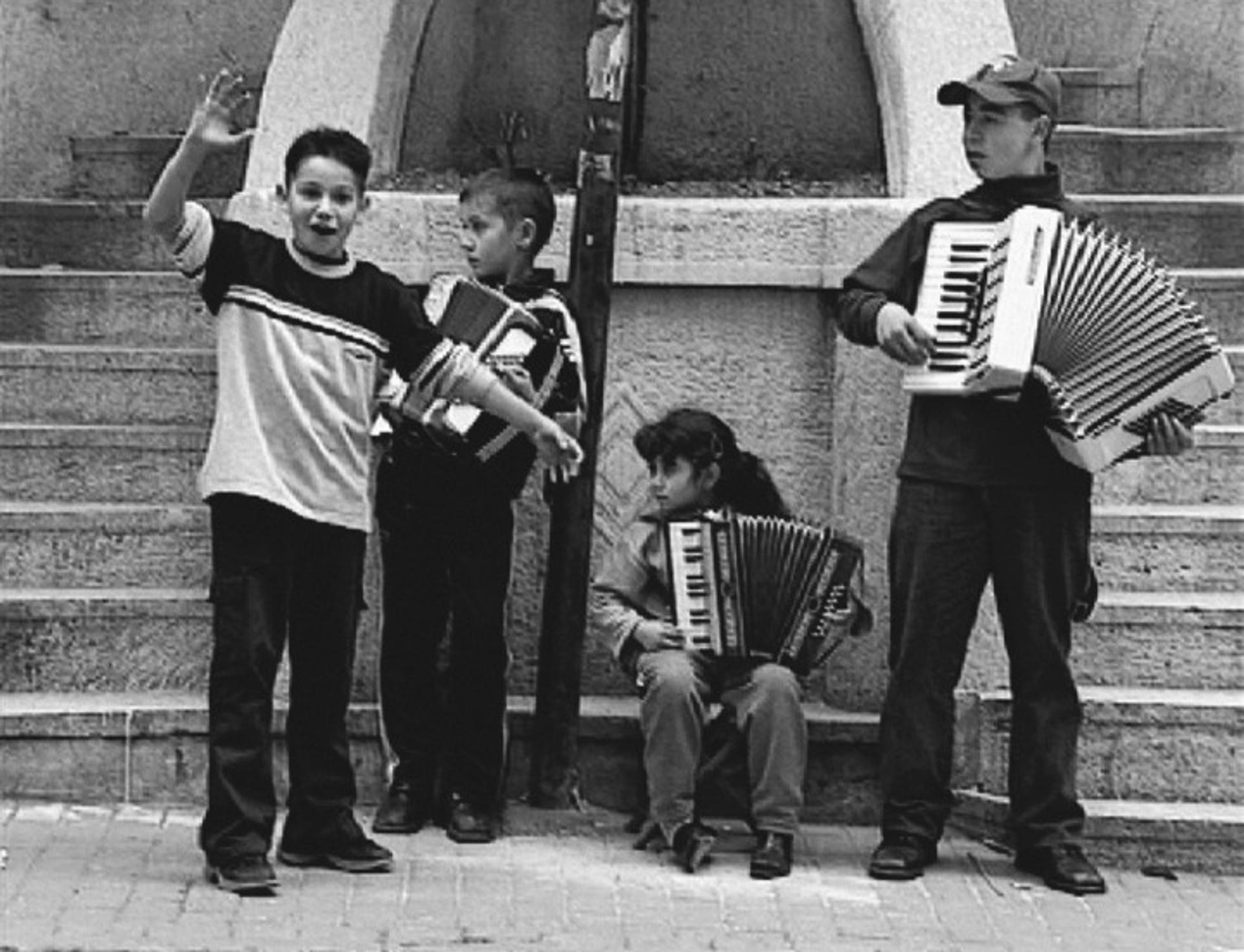 Although Karamustafa included kitsch objects as they are in everyday life, she distanced herself from these materials to evoke various interpretations. For example, in Mystic Transport (1992; PI. 7 & Fig. 1),[5] colorful blankets in large baskets typically used for moving made reference to the lives of people who had to migrate but belonged nowhere. The migration theme reoccurs in several works that were exhibited in international shows. Heitmat Ist wo Mann Isst (Homeland is not where you are born, but the place that feeds you) (1994)[6] consisted of three pieces of spoons wrapped in gauze and under which was written "Heimat Ist wo Mann Isst." For her video Stairway (2001; Fig. 2), she recorded the work conditions of a group of gypsy children who had migrated from Eastern Europe. The "stairway" of the video was built in the 1850s by Abraham Salomon Kamondo, an important Jewish broker of Istanbul's Karaköy district. The children made music and collected money at this spot. They had come with their families for three months (the length of their visas) to Istanbul, where they lived in poor conditions and earned money before having to return to their home countries.