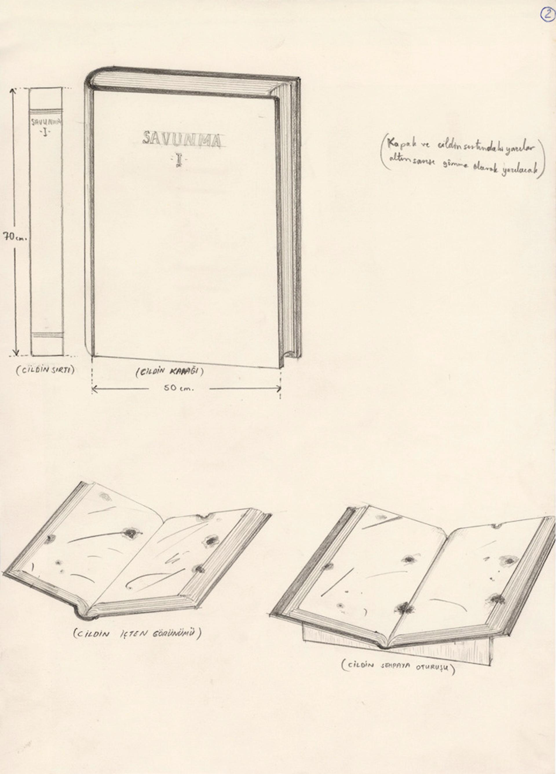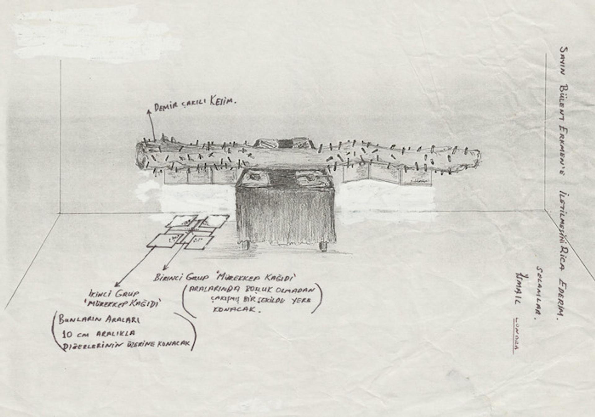 İsmail Saray’ın Cengiz Çekil’e yolladığı, Toplu Sergi’deki Savunma isimli işinin taslağı