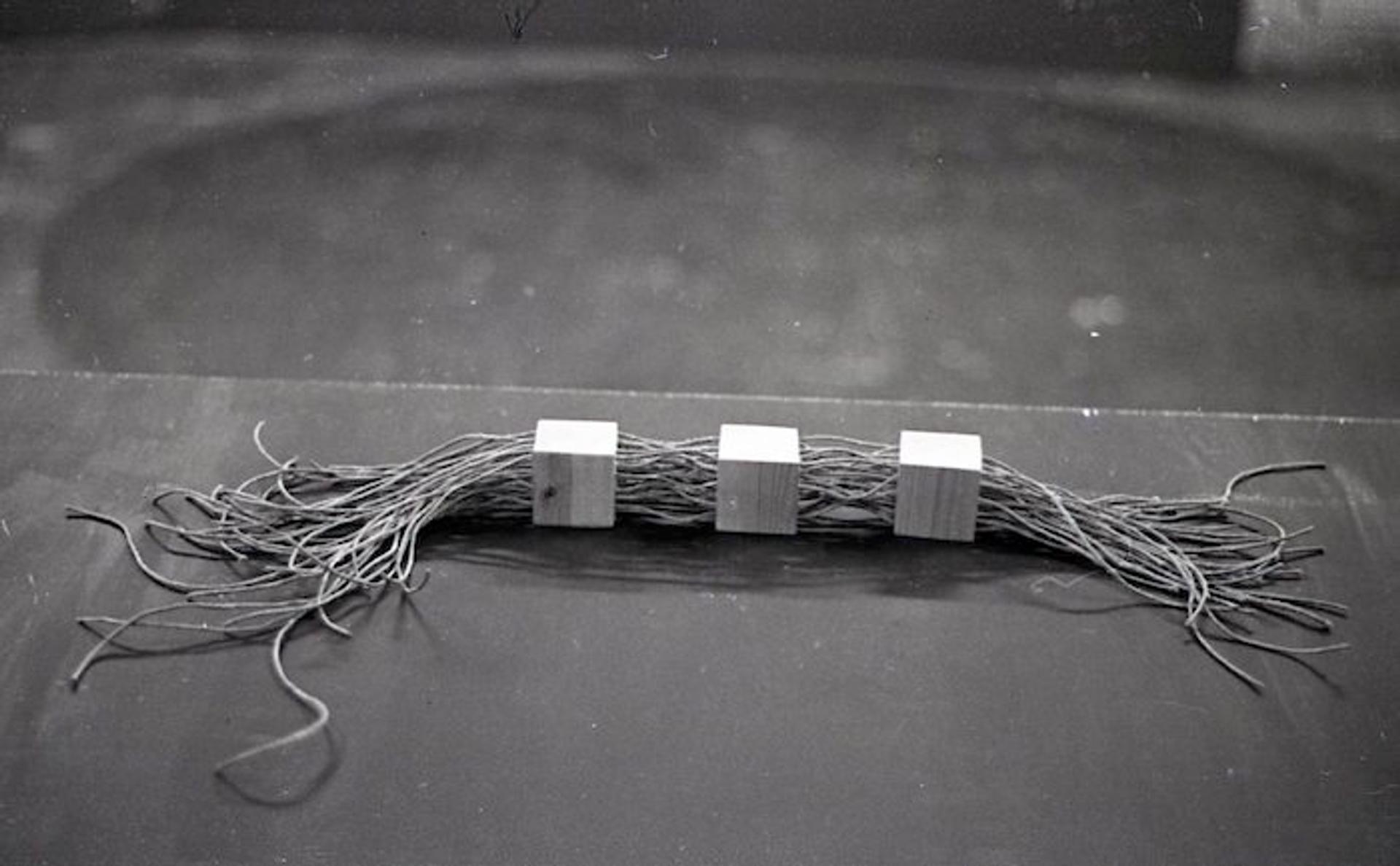 İ.S.: O işlerin tekrar sunulmasını düşünmedim. Benim bugüne kadar üretilmiş tek işim, sergide yeniden kurduğumuz, Saint Martin's döneminde sisal lifleriyle gerçekleştirdiğim düzenlemedir.