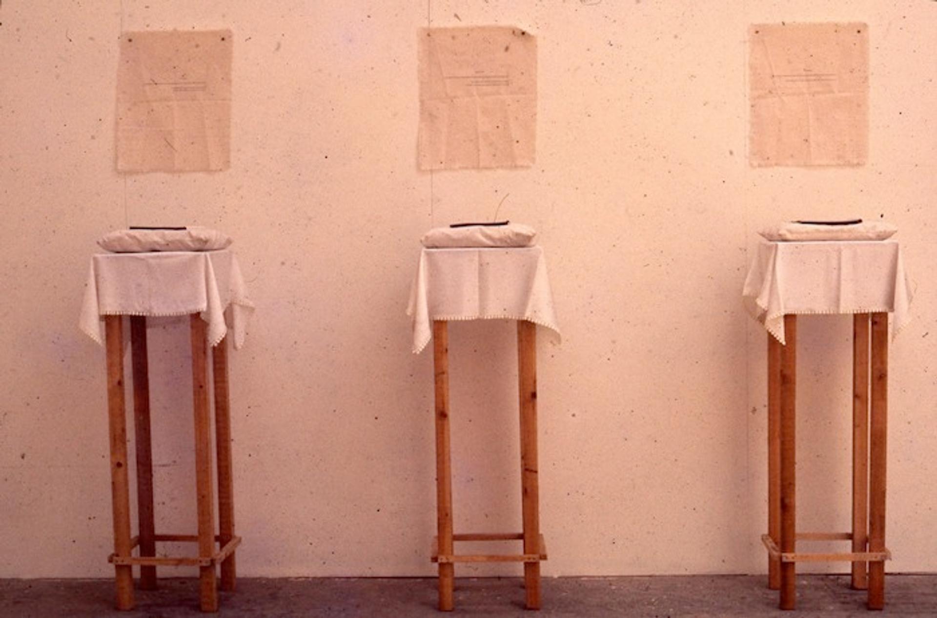 S.R.: 1980'lerin ortası ve 90'ların başında, Türkiye'de sergilenecek işlerinizin üretimi için sanatçı arkadaşlarınıza belirli tarifler yolladınız. Arşivinizde, 1987 ve 1988'deki Toplu Sergi'deki işleriniz için Cengiz Çekil'e; A,B,C,D sergilerindeki işlerinizle ilgili Bülent Erkmen'e ve Öncü Türk Sanatından Bir Kesit sergisindeki işiniz üzerine de Serhat Kiraz'a iletmiş olduğunuz mektuplar var. Bu mektuplarda, işlerin üretim aşamasında kullanılacak çivi ve bezin çeşidine kadar muazzam bir detaylandırma söz konusu. Bu işlerin, o tariflere göre yeniden üretilmesi fikrine nasıl bakıyorsunuz?