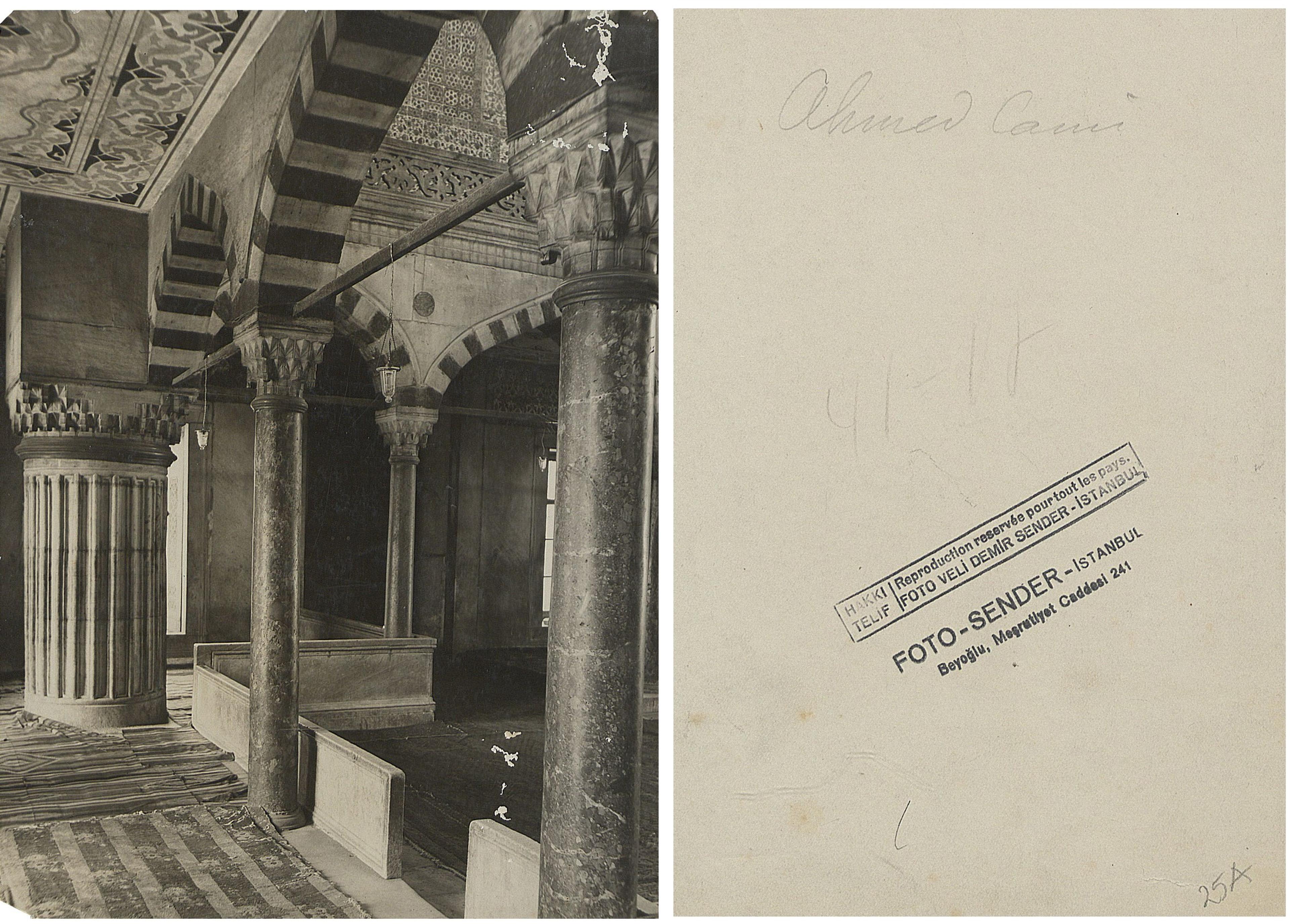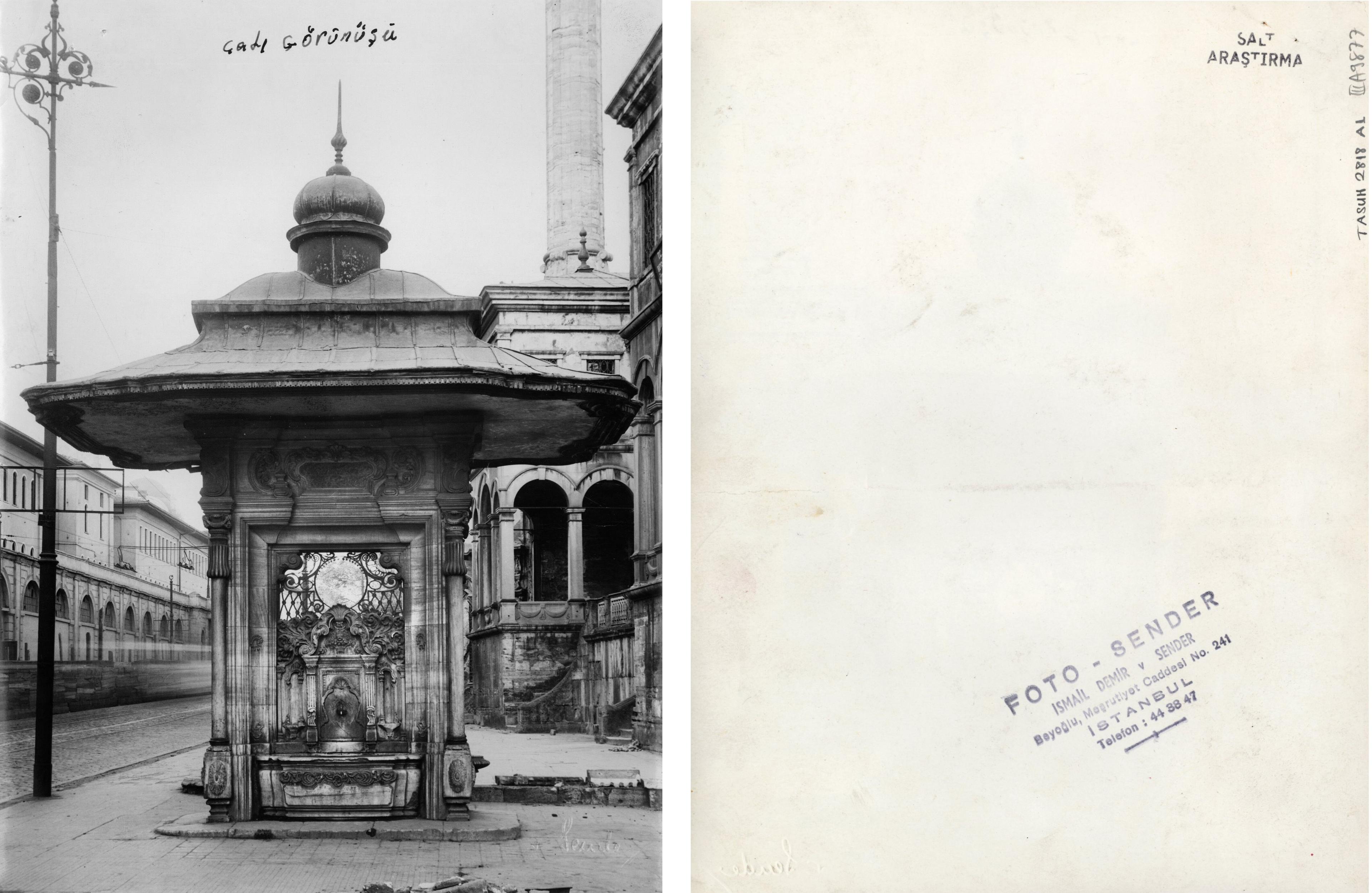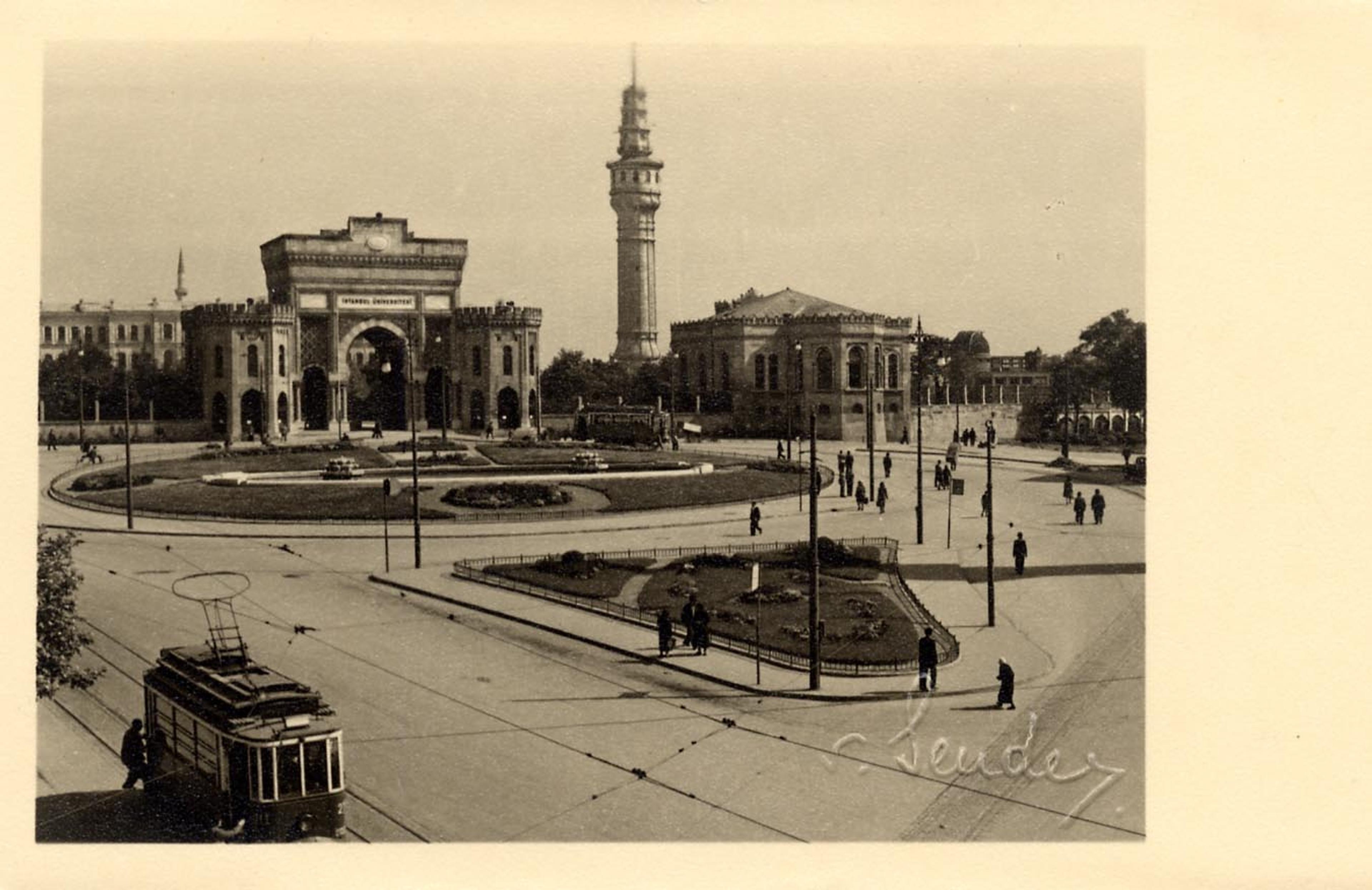 Sağ alt köşede “Sender” yazılı soğuk damgası ile birlikte Beyazıt Meydanı’na dair baskı fotoğraf