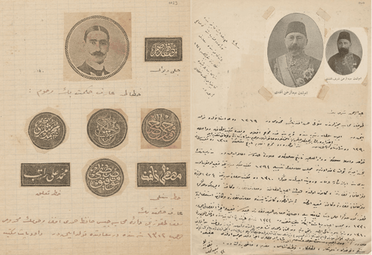 Hattat Arif Hikmet Bey’in biyografisi, EATBA1029 (solda) ve Abdurrahman Şeref Efendi’nin biyografisi, EATBA0740 (sağda)