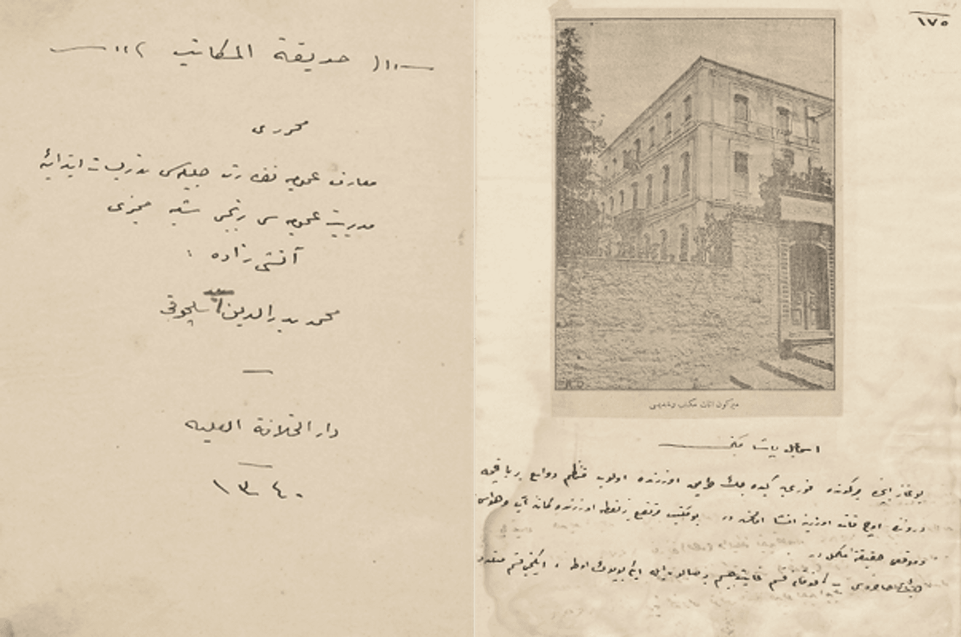 Sağda: Emirgan İnas Mekteb-i Rüşdiyesi (üstte) ve İsmail Paşa Mektebi (altta), s. 175, EATBKD006175