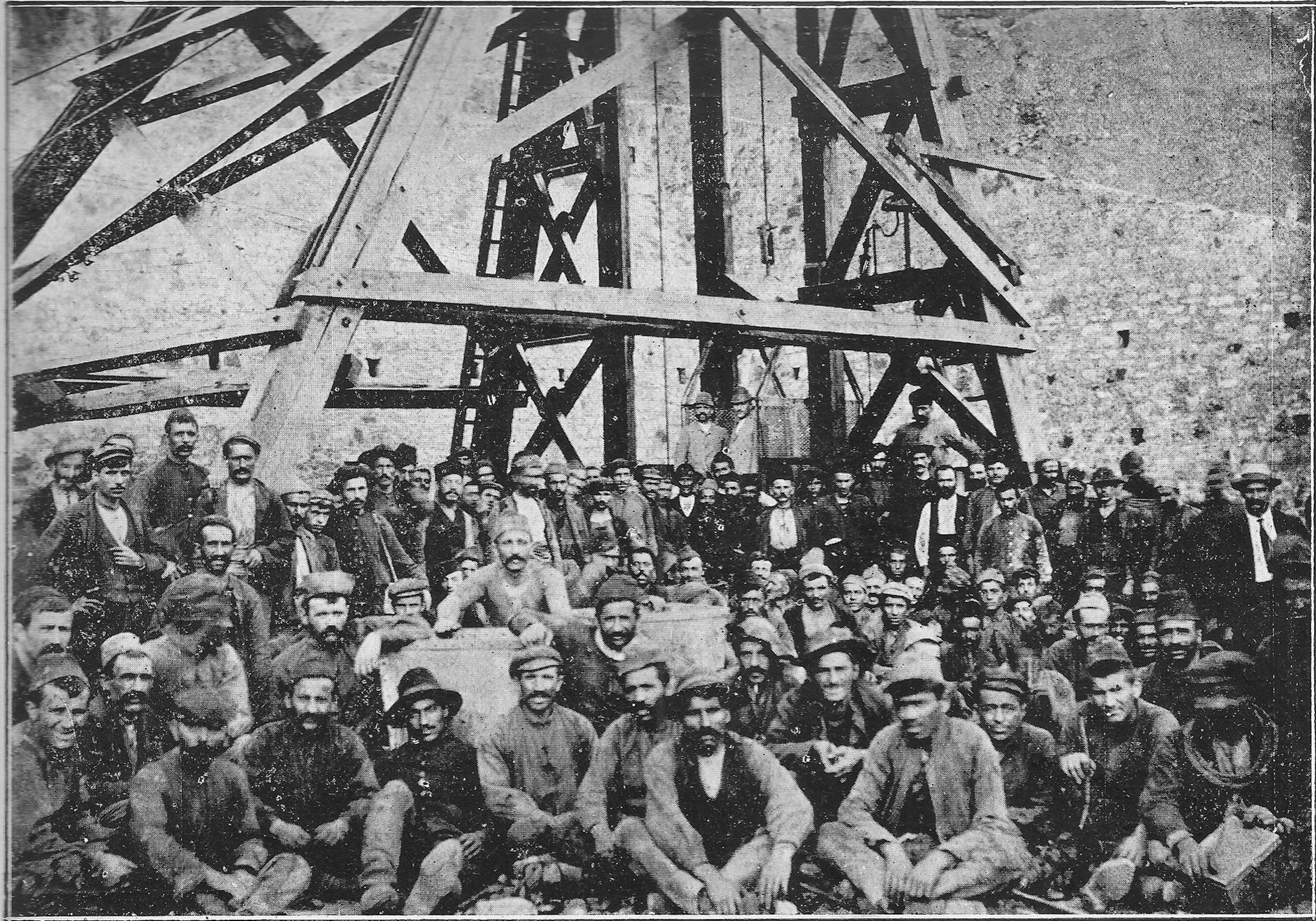 1910’da İzmir’de yayımlanan Kosmos dergisinde Arı kuyusunun önündeki madencilerin fotoğrafı