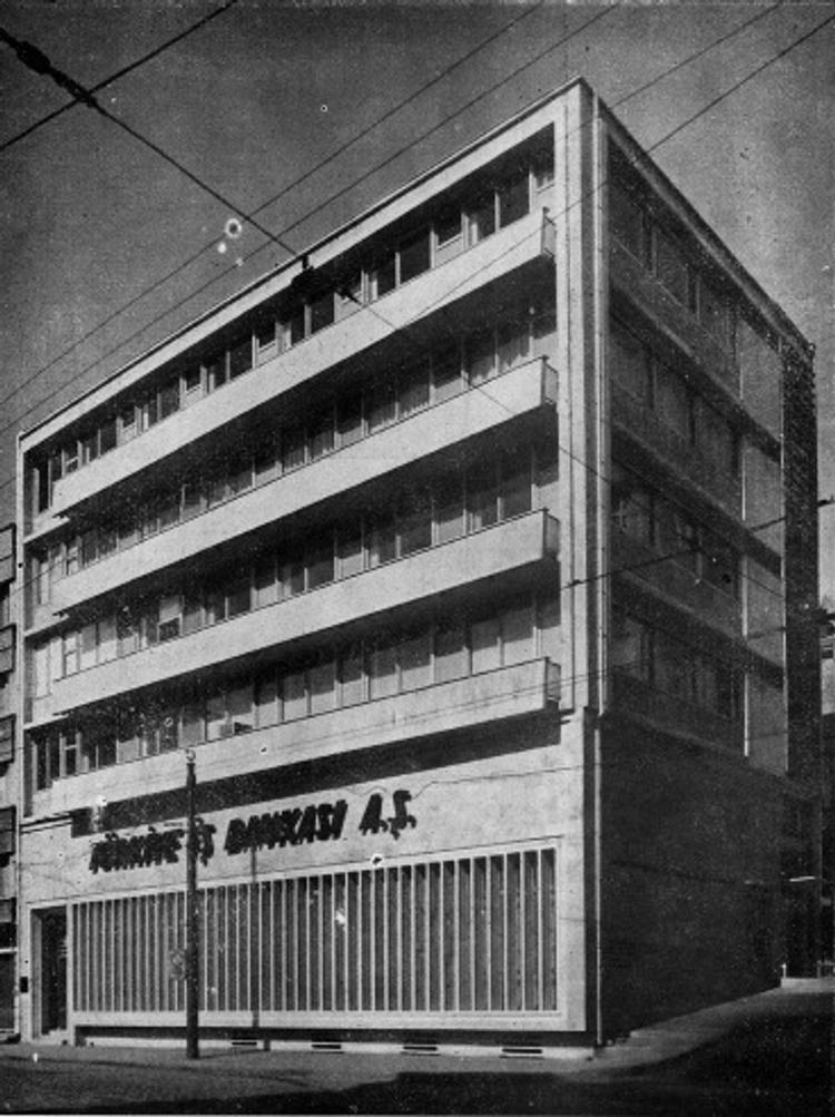 Kronolojik olarak ikinci proje, TİB Kadıköy Şubesi'dir. 1 Temmuz 1933 tarihinde açılan[9] Kadıköy Şubesi, Rıhtım'da muhtemelen Cumhuriyet öncesinde ticari bina olarak inşa edilmiş tek katlı bir yapıyı kullanıyordu. 1950'lerden itibaren bölgede daha büyük ve yüksek katlı yapılar inşa edilmeye başlandı. TİB'in bu kapsamda Kadıköy Şubesi için bir mimari proje yarışması açtığını -yarışma detaylarına ulaşamamış olsam da- projenin müelliflerinden olan Perran Doğancı'dan öğreniyoruz[10]. Nezih Eldem'in de bu yarışma için bir proje hazırladığı anlaşılıyor. Yarışmayı Perran Doğancı, Altay Erol, Süleyman Giritlioğlu ve Cavit Özedey ekibinin kazandığını, binanın 1975 civarında Çelik Alatur tarafından yeniden düzenlendiğini ve en son olarak da 1999 depremi sonrasında bankanın yıkılarak yeniden yapıldığını biliyoruz[11]. Eldem bu yarışmayı kazanamamış olsa da bir sonraki sene bankanın Aydın Şubesi'ni projelendirmesi, belki de Kadıköy Şubesi'ne hazırladığı proje ile bankanın dikkatini çektiğini gösteriyor. Bu çıkarım da korkarım ki bankanın arşivini inceleyene kadar netleşmeyecek.