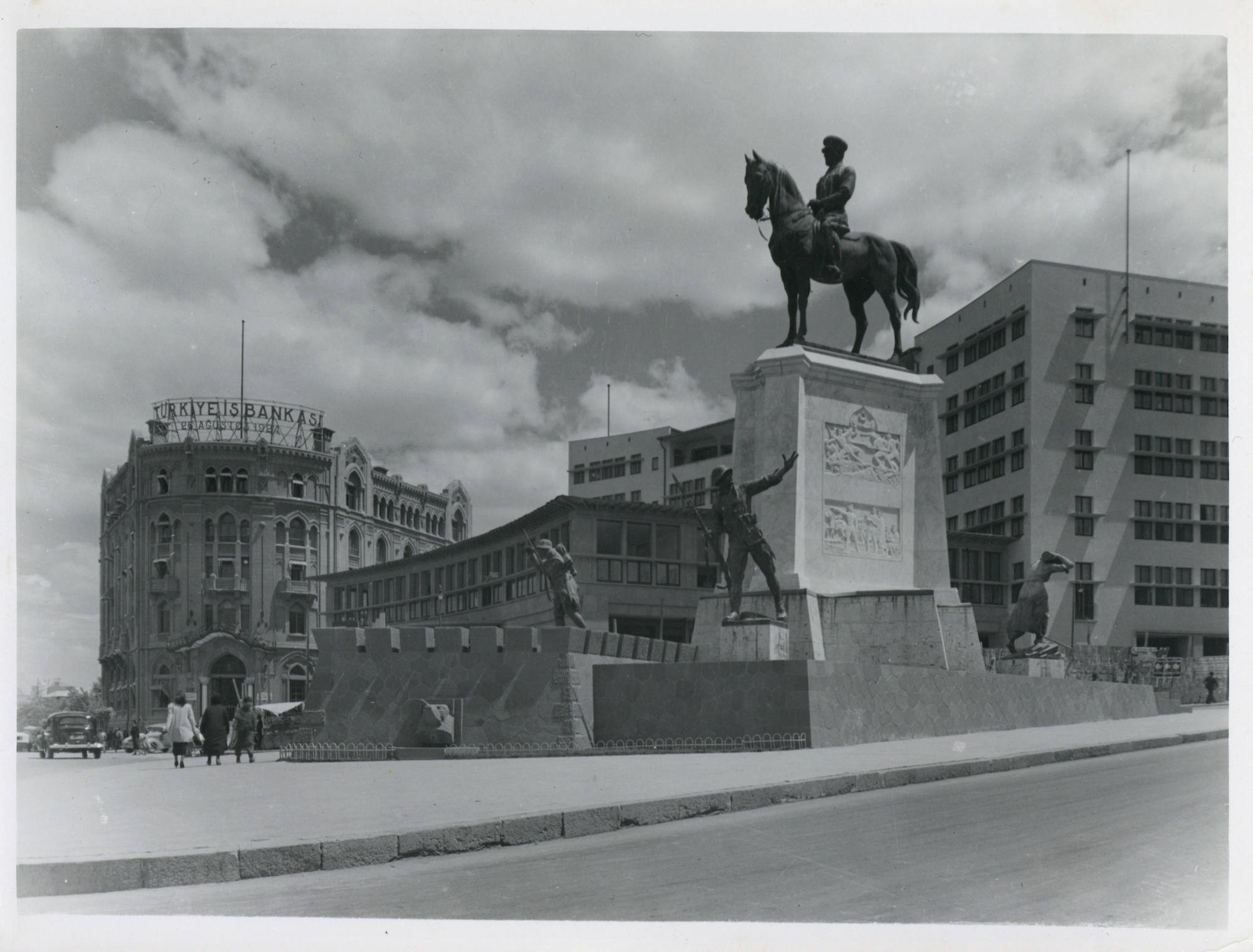 Giulio Mongeri tarafından tasarlanan Türkiye İş Bankası III. Umum Müdürlüğü (arka planda), Ankara