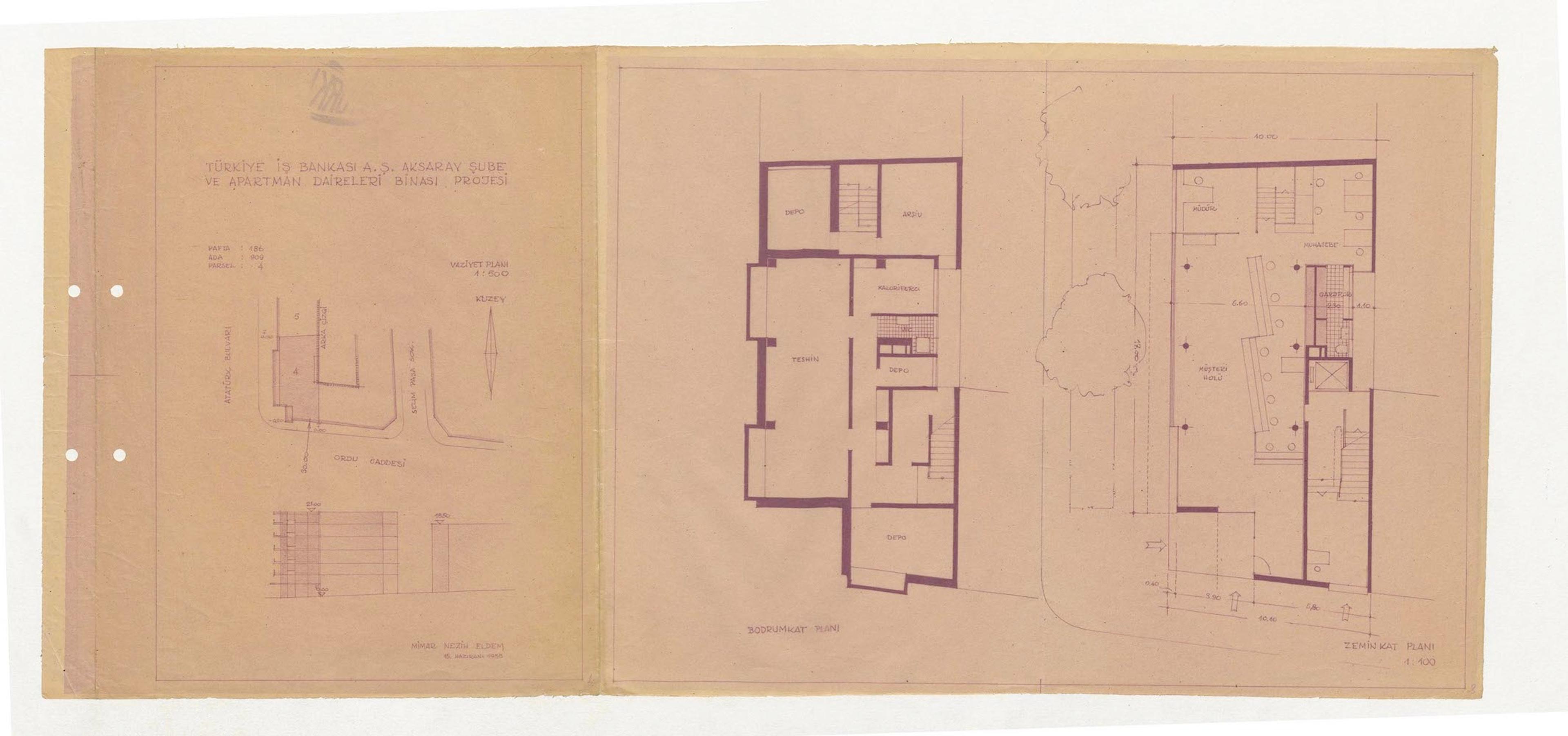 Arşivdeki bir diğer proje, ilk defa 26.10.1953 tarihinde açılan ve Eldem'in paftalarını Eylül 1955 tarihiyle imzaladığı Aksaray Ajansı ve Apartmanı projesi. Ordu Caddesi ile Atatürk Bulvarı'nın kesişiminde bulunan arsayı TİB'in şube ve üst katlarda lojman olarak değil, ajans ve üzerine apartman olarak değerlendirdiği anlaşılıyor. Ajans olarak adlandırılan birimler daha çok büyük kentlerde ana şubelerin haricindeki tali şubeler olarak açılıyordu. TİB'in 1950'li yıllarda yoğun olarak ajans açtığını, bunların bazılarının banka tarafından inşa edildiğini, projelerini zaman zaman Eldem gibi dışarıdan çalıştığı mimarlara verdiğini ve bazı durumlarda yarışma açtığını biliyoruz[13]. Projeler dışında, arşivdeki Ocak 1957 tarihli mektubunda Nezih Eldem TİB'e metraj ve fiyat analizini sunduğunu söylüyor, Nafıa Vekaleti'nin fiyat analizlerinin gerçeklikten uzak olması sebebiyle uyguladığı başka işlerdeki fiyatlardan çıkarsama yaptığını belirtiyor. Bir başka mektubu ise Doç. Ahmet Akhunlar tarafından hazırlanan elektrik tesisatı projesiyle ilgili detayları kapsıyor. Dikkati çeken bir diğer konu da Eldem'in artık "Doçent" ünvanını kullanıyor olmasıdır. Canan Osmanağaoğlu İlmen'in tezinde de belirttiği gibi[14], Eldem'in bu projeleri İTÜ Mimarlık Fakültesi döner sermayesi kapsamında gerçekleşmiş olmalıdır.