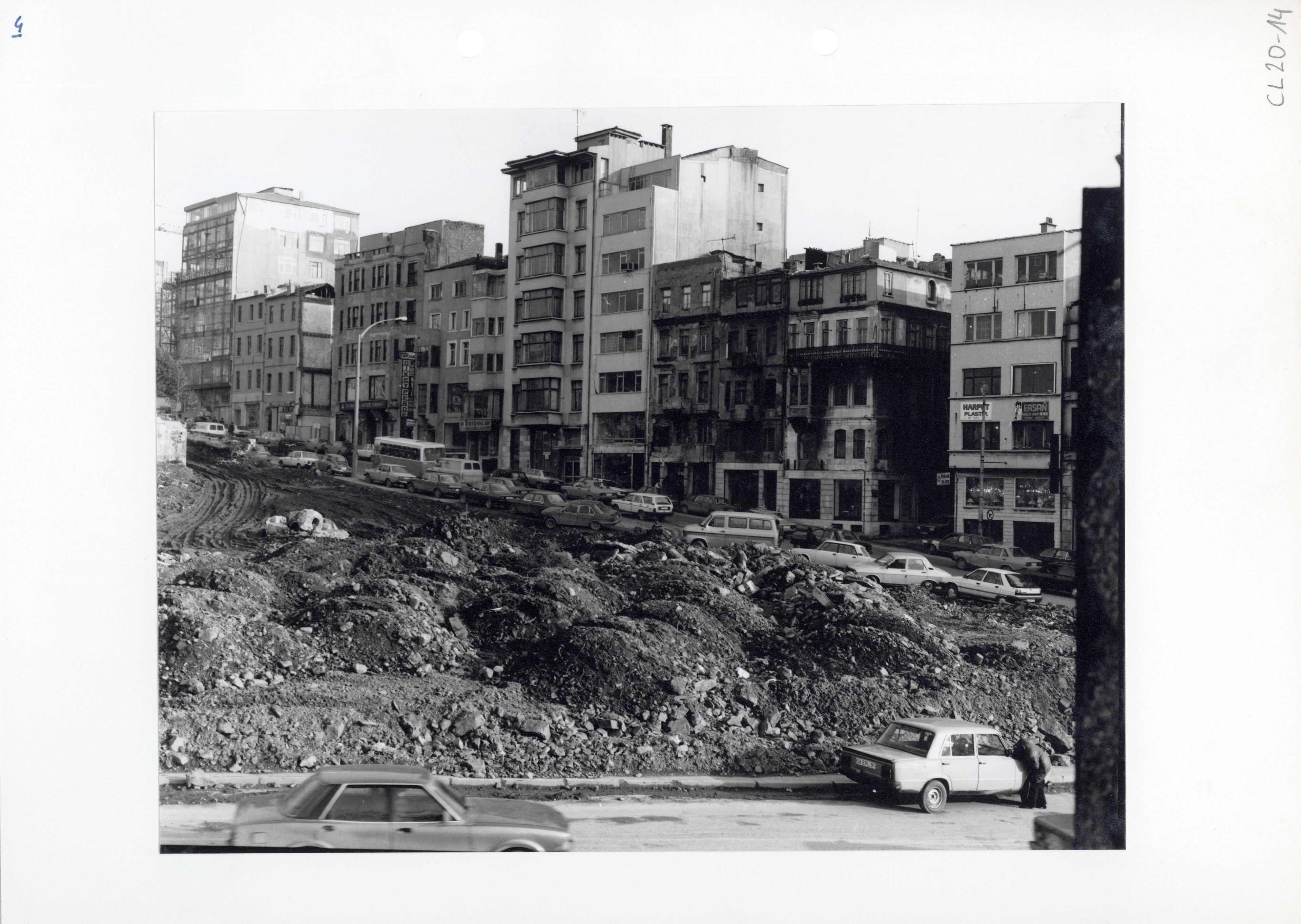 Tarlabaşı Bulvarı yapım çalışmaları sırasında Şişhane Viyadüğü’nün inşaatı, 1989