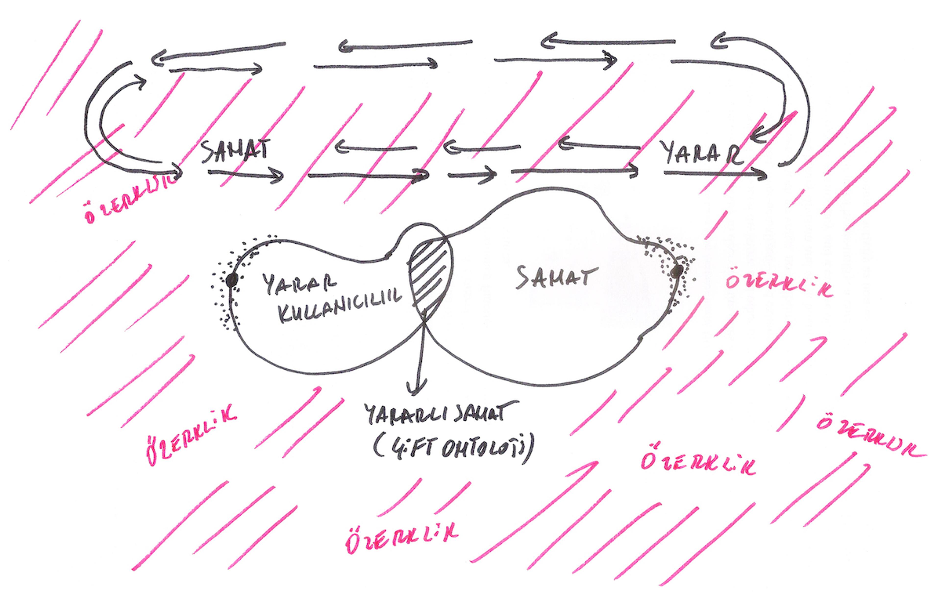 Kavramsal karmaşa tam da buradan kaynaklanıyor. Yarar ya da kullanıcılık vurgusu üzerinden bir sanat anlayışı geliştirip, sanatsal özerkliği de bu yararlı sanatın karşısına koyunca -sanatı bir alet olarak düşününce-, sanat araçsallaşıyor ve tam da "kullanım" kavramının özünü ve siyasetini kaybediyor. Halbuki bunlar bir ve aynı şeydir, daha doğrusu aynı yaklaşımın farklı veçheleridirler. Kullanım ve özerklik, kullanım ve salt kendisi için yapılan faaliyet bir ve aynı şeydir. Biri diğerini dışlamaz aksine besler. Aktivizm (yarar) ve sanat (özerklik) arasındaki suni ayrım bu yanlış anlamadan kaynaklanır.