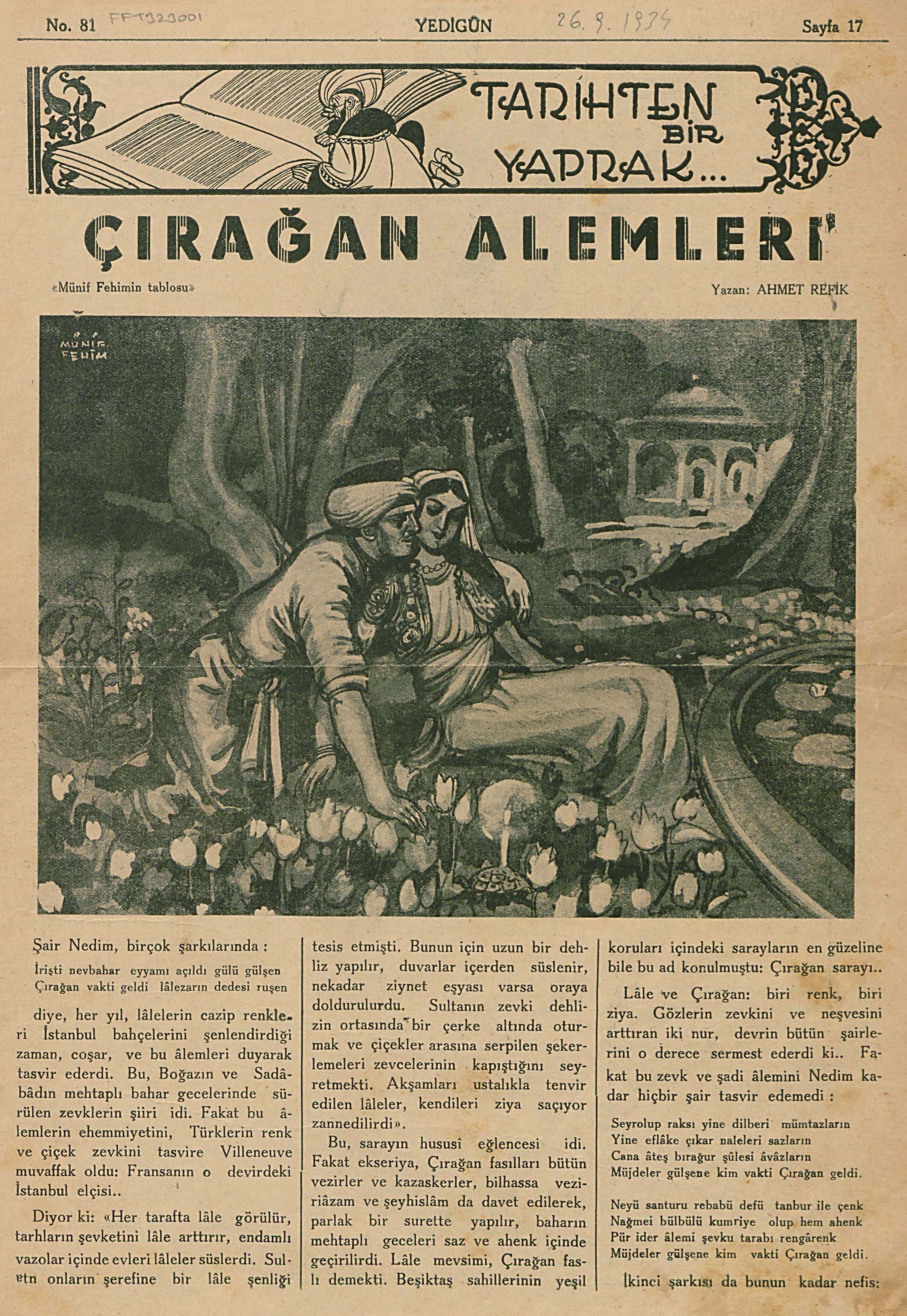 Ahmet Refik, “Çırağan Alemleri”, Yedigün, Sayı: 81, 26 Eylül 1934