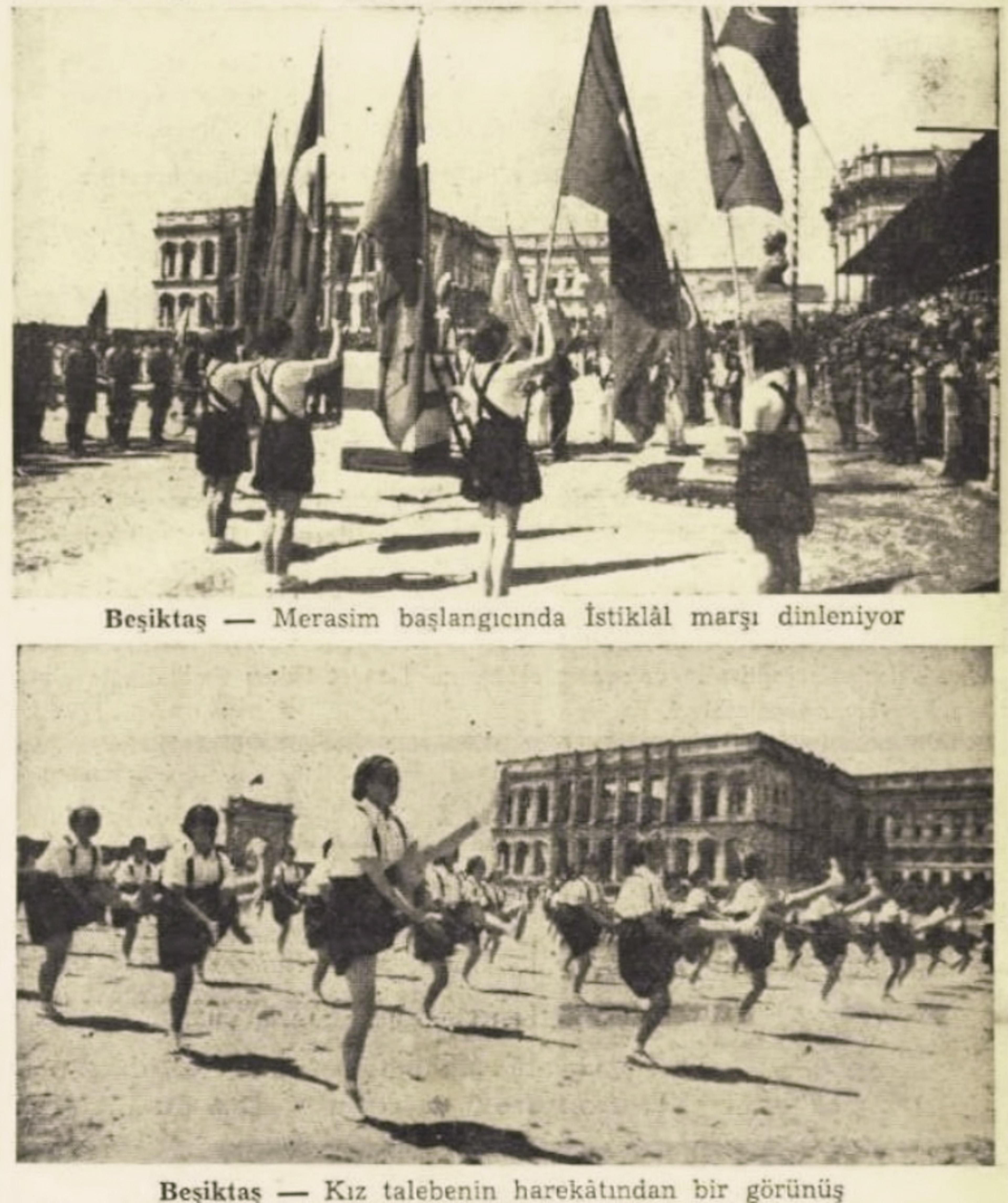 Dönemin önemli bir gösteri âdetiyse sağlıklı bedenlerin teşhiri ve senkronize hareketlerden oluşan törenlerdir. Ulusal bayramlarda askerlerin yanında her yaştan öğrencinin de etkin rol aldığı bu gösterilerin stadyum gibi alanlarda gerçekleşmesi tercih edilir. İşte Şeref Stadı'nın imdadına yetiştiği ihtiyaçlardan biri daha! Ortaköy, Çırağan, Vişnezade, hatta Yıldız ve Arnavutköy'deki okullar yıllarca 23 Nisan ve 19 Mayıs kutlamalarını bu statta gerçekleştirir. Beşiktaş Köyiçi'ndeki Büyük Esma Sultan İlkokulu'nda okuyan Rengigül Ural, tören hazırlıklarını şöyle hatırlıyor: