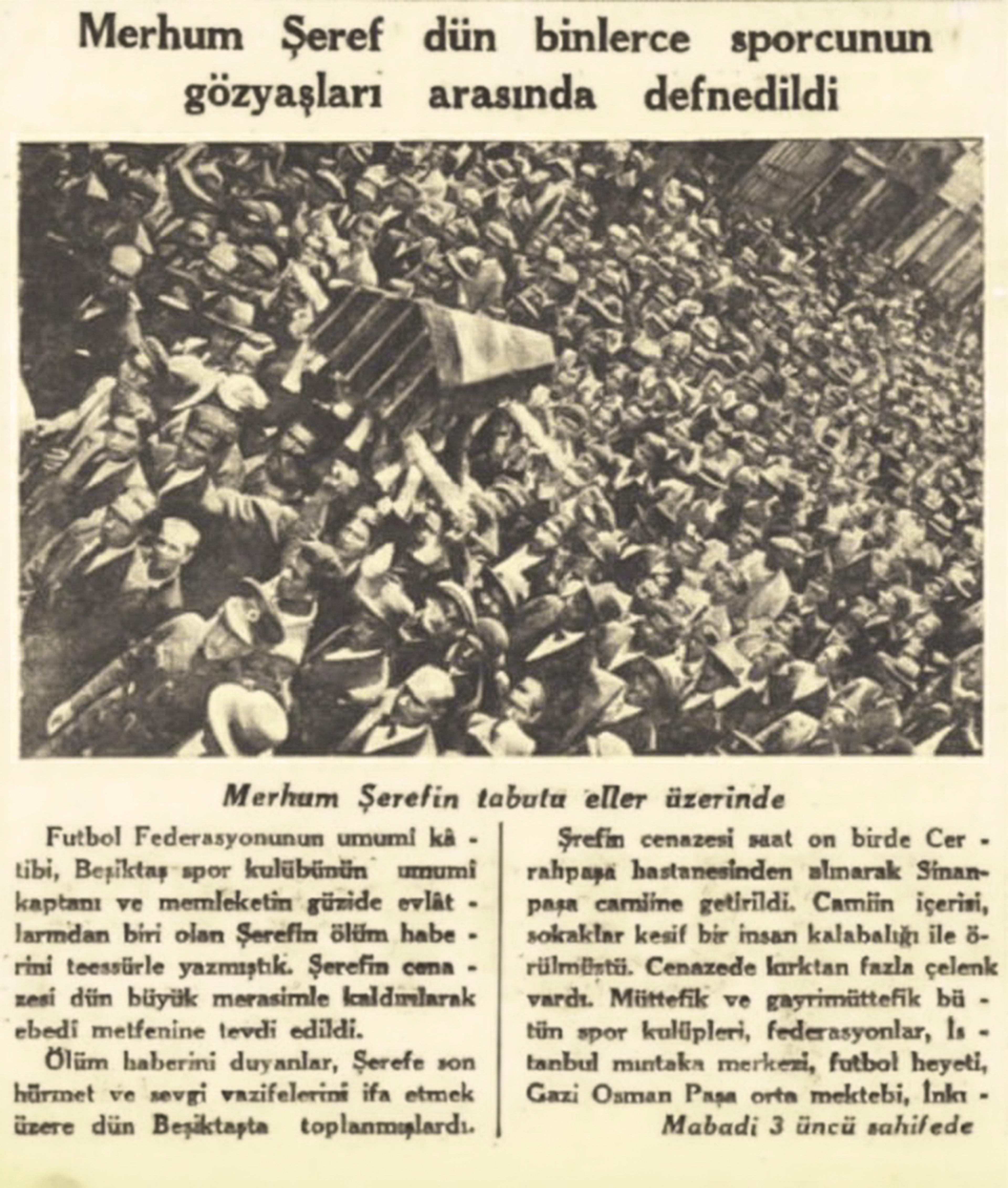 Yarım asırdan uzun süre sadece Beşiktaşlıların değil, tüm İstanbulluların yararlanacakları metruk bir arazinin çok işlevli bir spor ve rekreasyon alanına dönüşmesini sağlayan Şeref Bey 13 Haziran 1933'te hayata gözlerini yumar. Sevenleri onu son yolculuğuna isminin verildiği bu stattaki törenle uğurlar.[7]