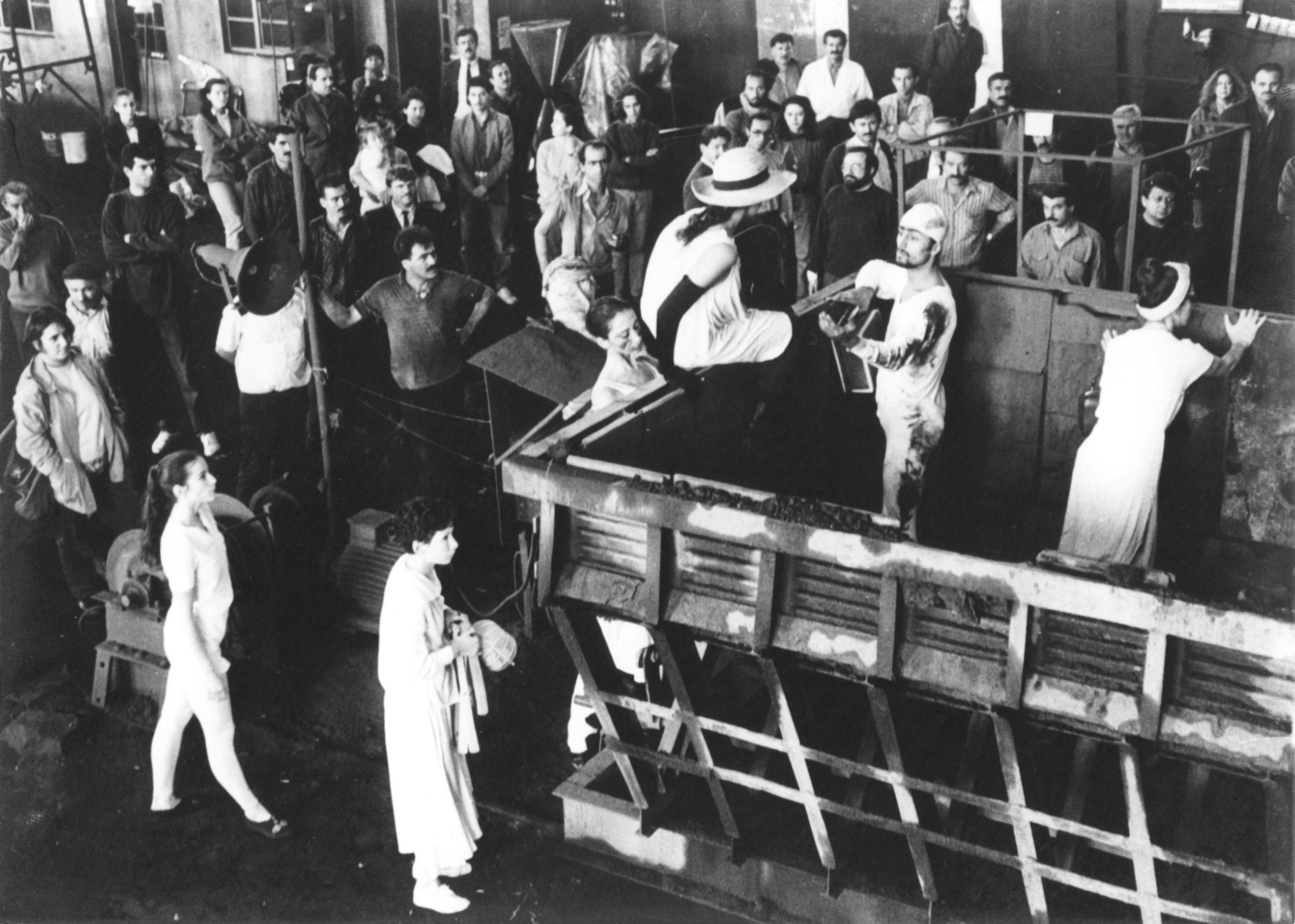 Salt'ın çeşitli kaynaklardan toplanmış arşivlere dayanan "Sahnede 90'lar" sergisi, sahne ve performans kavramları etrafında Türkiye'nin 1990'lı yıllarından sanat üretimlerini bir araya getiriyor. Salt Araştırma ve Programlar ekibinden Tuğçe Kaplan, "Sahnede 90'lar" kapsamında fotoğraf, afiş, yazışma gibi arşivsel malzemelerle ele alınan "Seretonin" sergilerine odaklandığı yazısının ikinci bölümünde, İstanbul'un kültür envanterindeki endüstriyel yapıları mesken tutmuş bu sergilerden "Seretonin II"nin (1992) sahnesi Yedikule Gazhanesi'nin şehir dinamikleriyle ilişkili dönüşümünden bir kesit sunuyor.