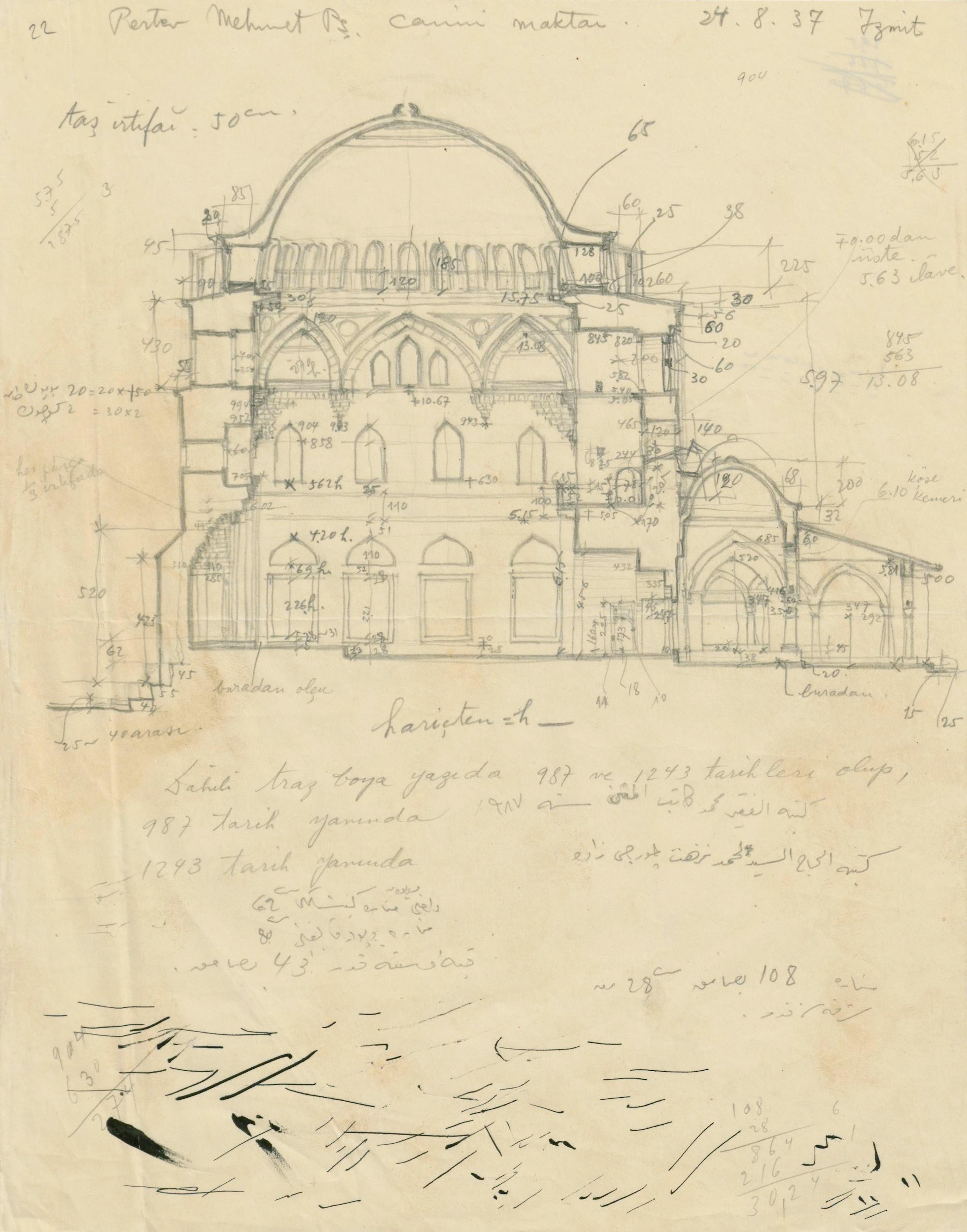 Ali Saim Ülgen’in Pertev Mehmet Paşa Camii’ne ilişkin bir belgeleme çalışması.