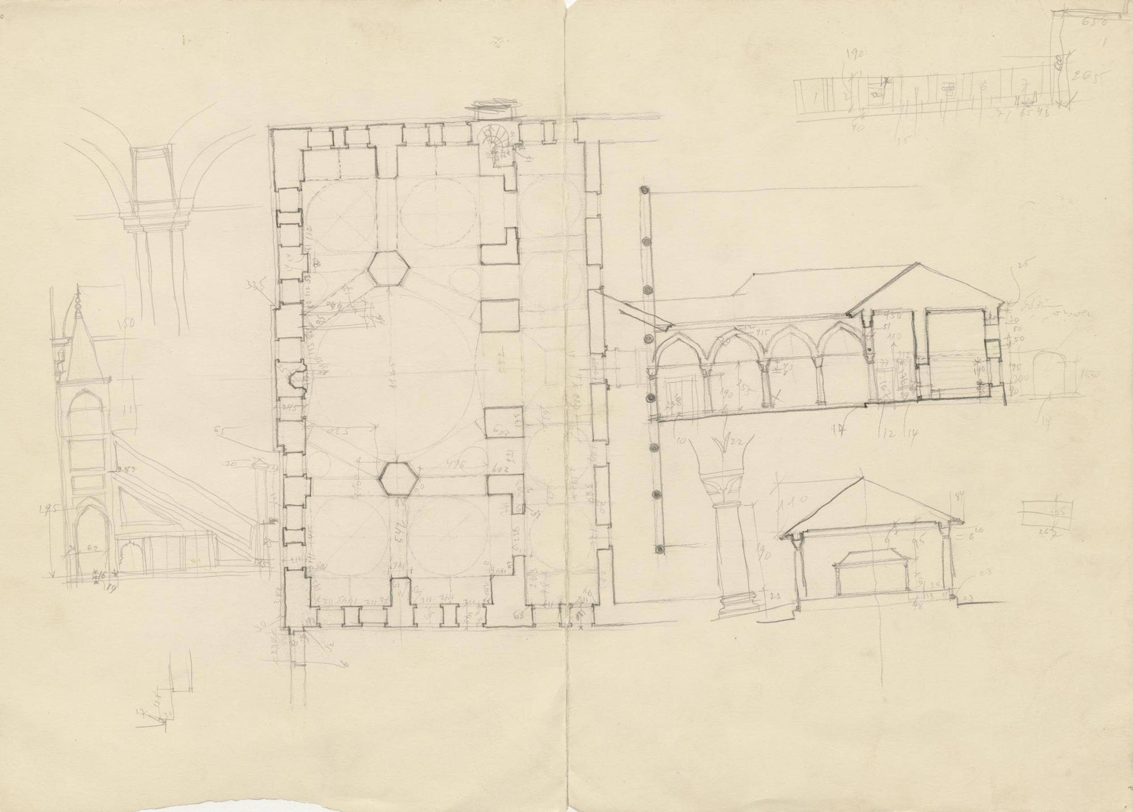 Ali Saim Ülgen’in Beşiktaş Sinan Paşa Camii’ne ilişkin bir ölçü krokisi.