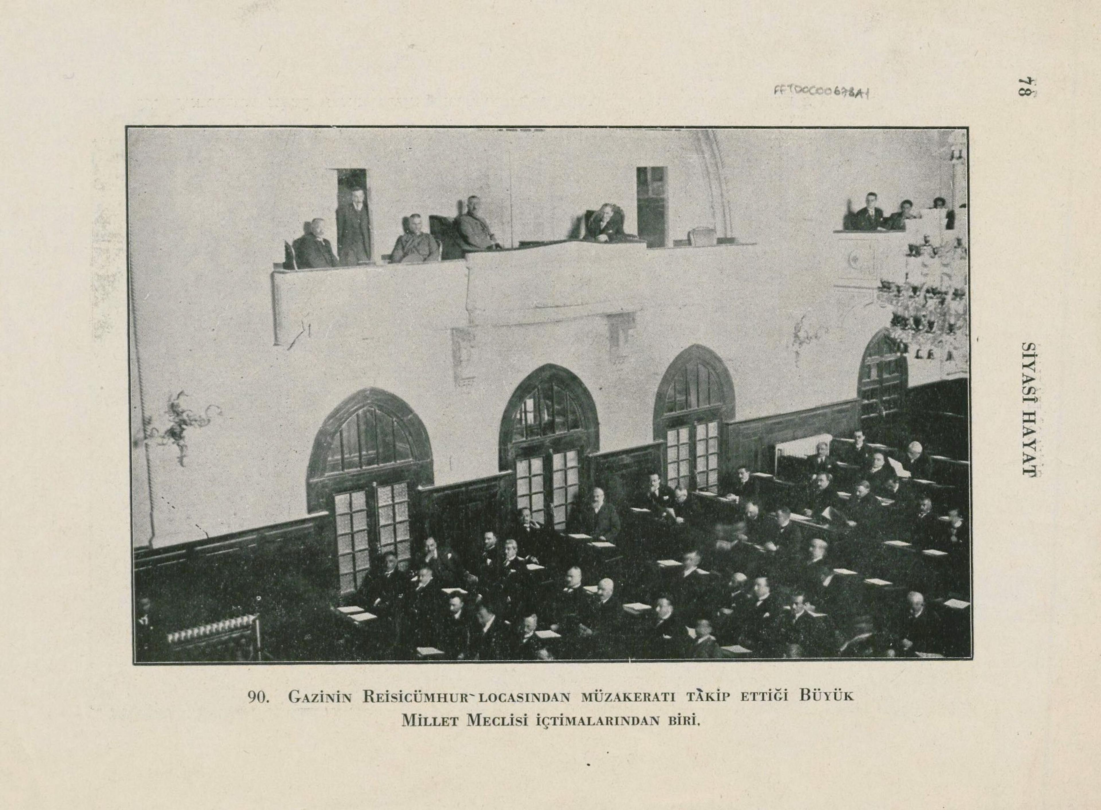 “Gazi'nin Reisicumhur Locası'ndan müzekârâtı takip ettiği Büyük Millet Meclis içtimalarından biri”