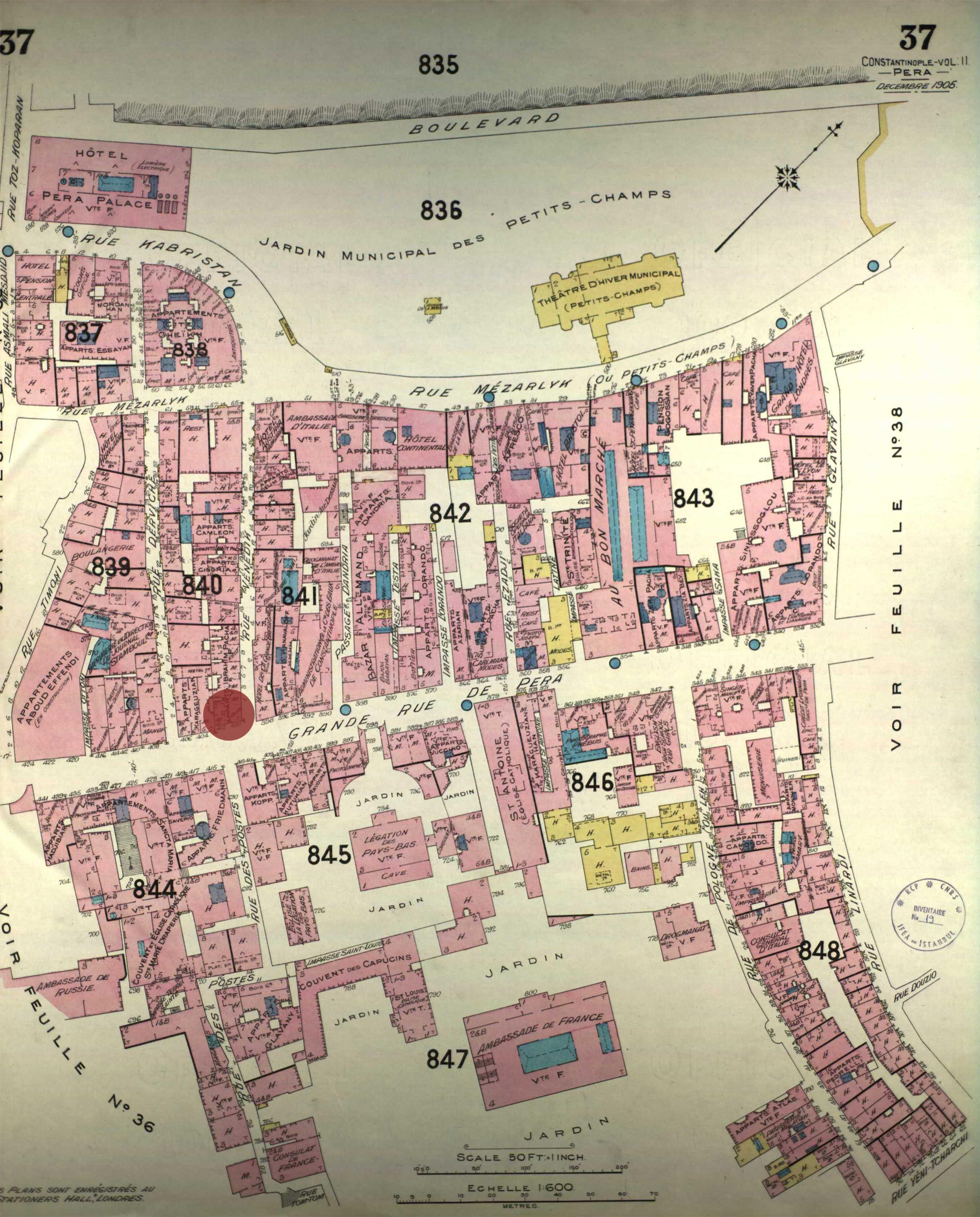 Charles Edward Goad tarafından hazırlanan 1905 tarihli Pera ve Galata bölgesi No: 37 haritasında Foto Sender’in konumu