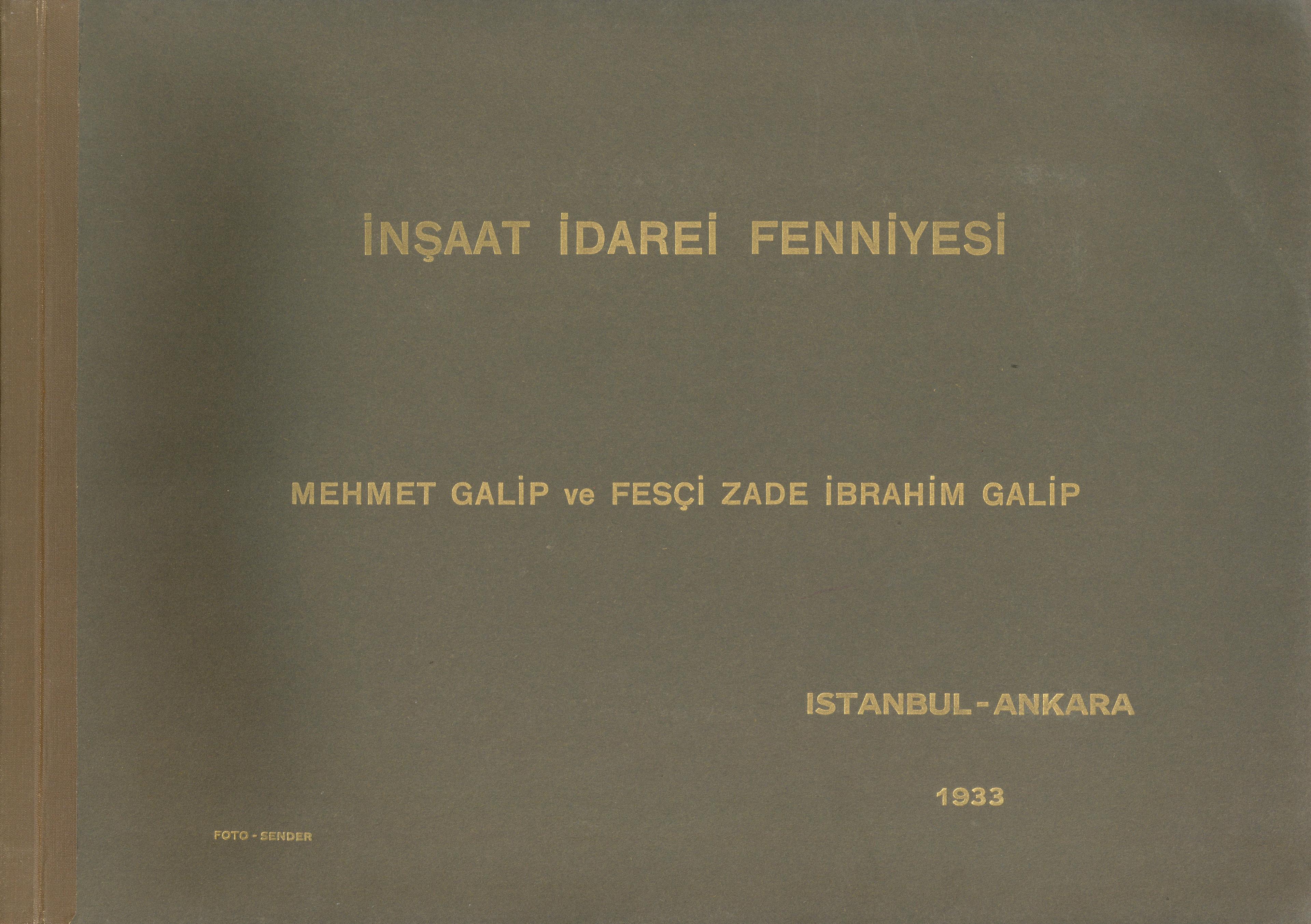 Mehmet Galip, Fesçi Zade İbrahim Galip ve Erzurumlu Nafiz (Kotan) Bey’in Ankara, İstanbul, Bursa ve Eskişehir’de yürüttüğü inşaatlar hakkında Fenni İdare Heyeti tarafından düzenlenmiş prestij albümü, Foto Sender, 1933