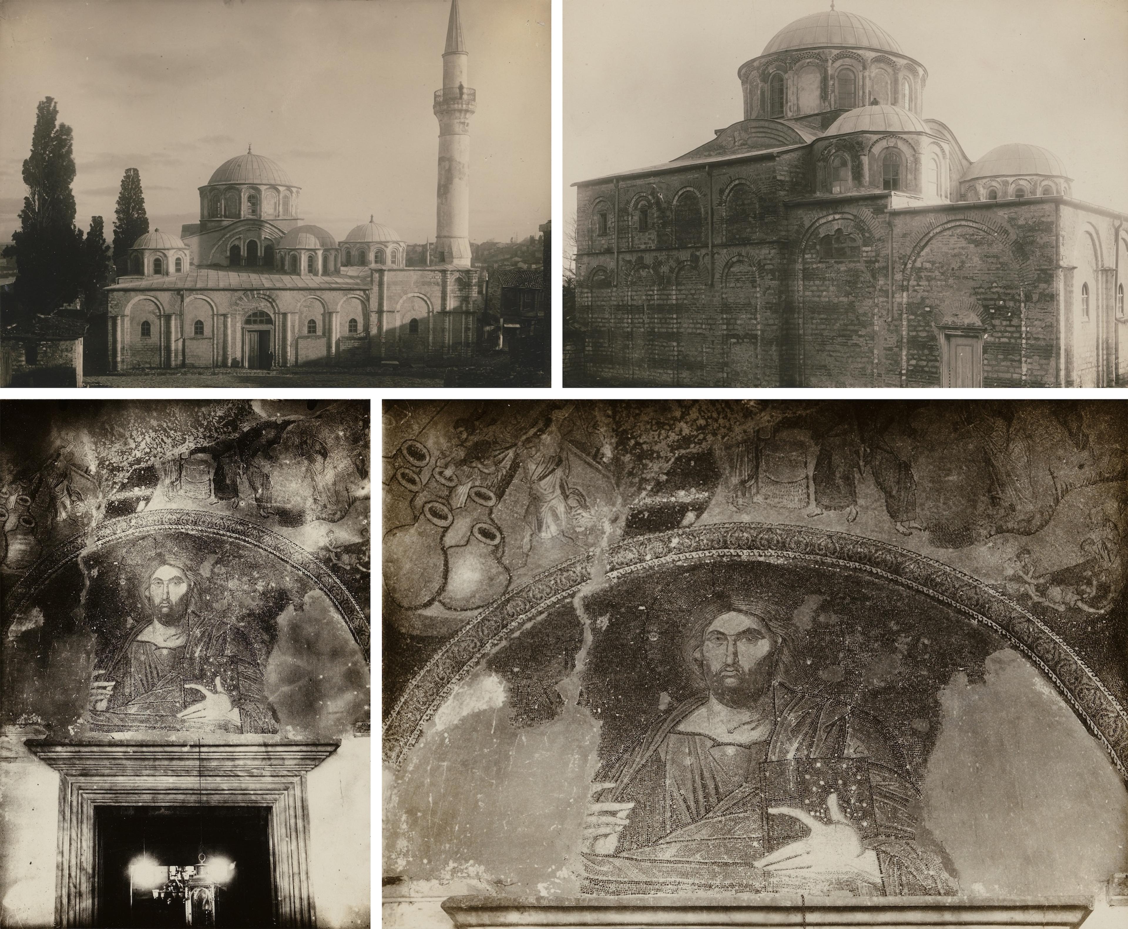Sol üstte: “Kariye Camisi, Kilise: Cephe (batı tarafı)”; sağ üstte: “Kariye Camisi, Kilise: Kuzey cephesi”, Byzantina: Important Antiquities of Constantinople, Constantinople: [s.n.], 1925–1930, No. 9